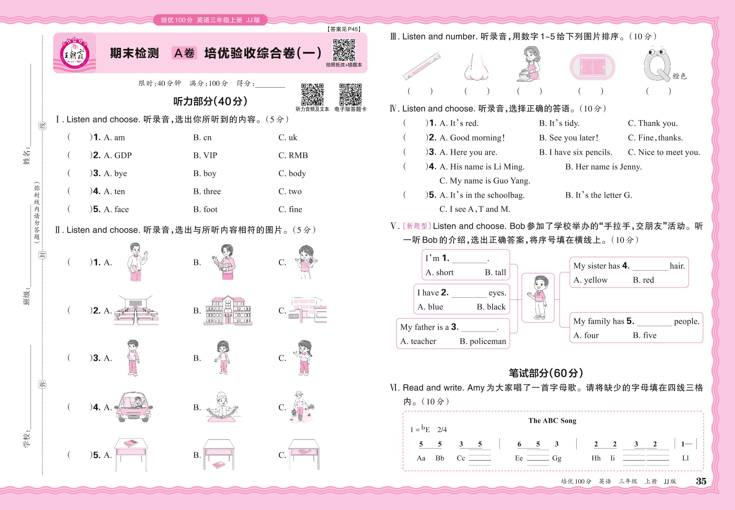 2024秋上册三年级英语冀教版 期末检测A卷 培优验收综合卷(一)