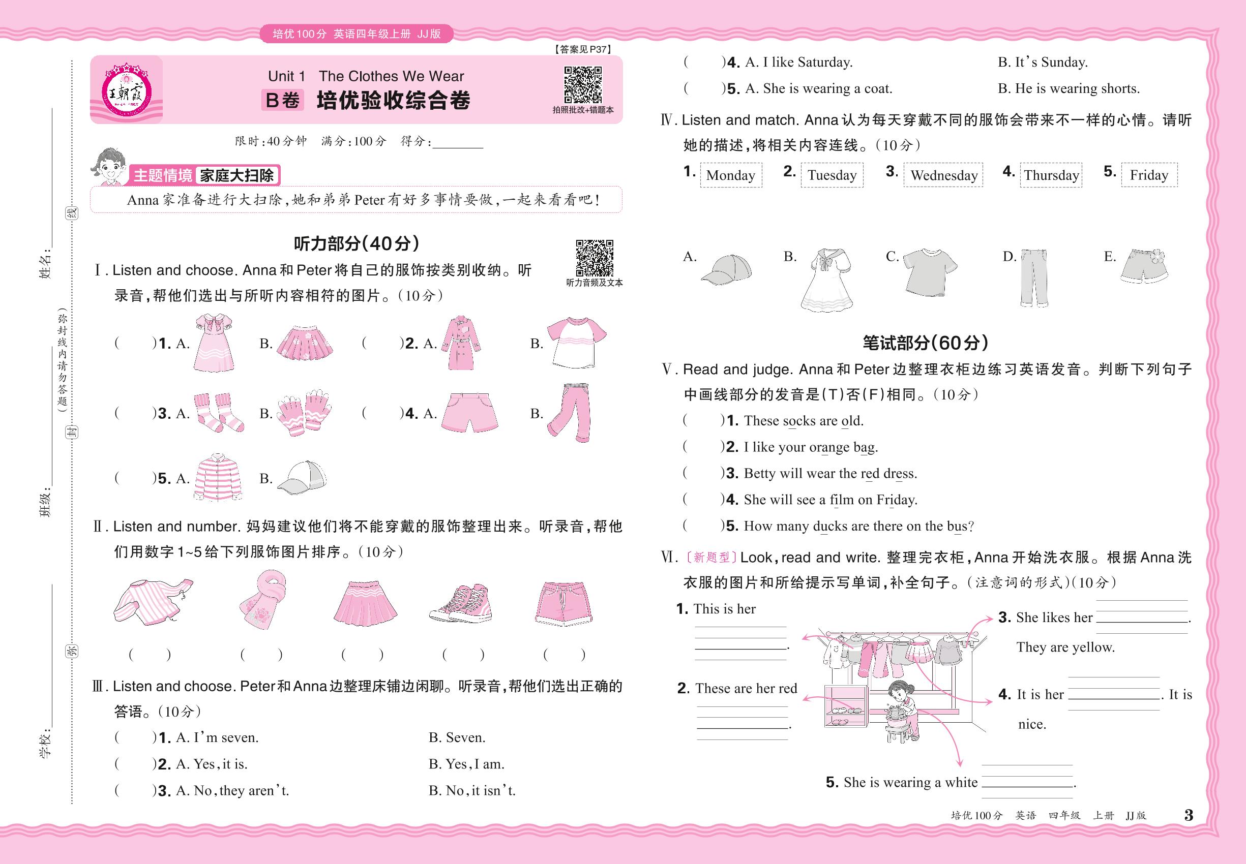 2024秋上册四年级英语冀教版 Unit 1 B卷 培优验收综合卷
