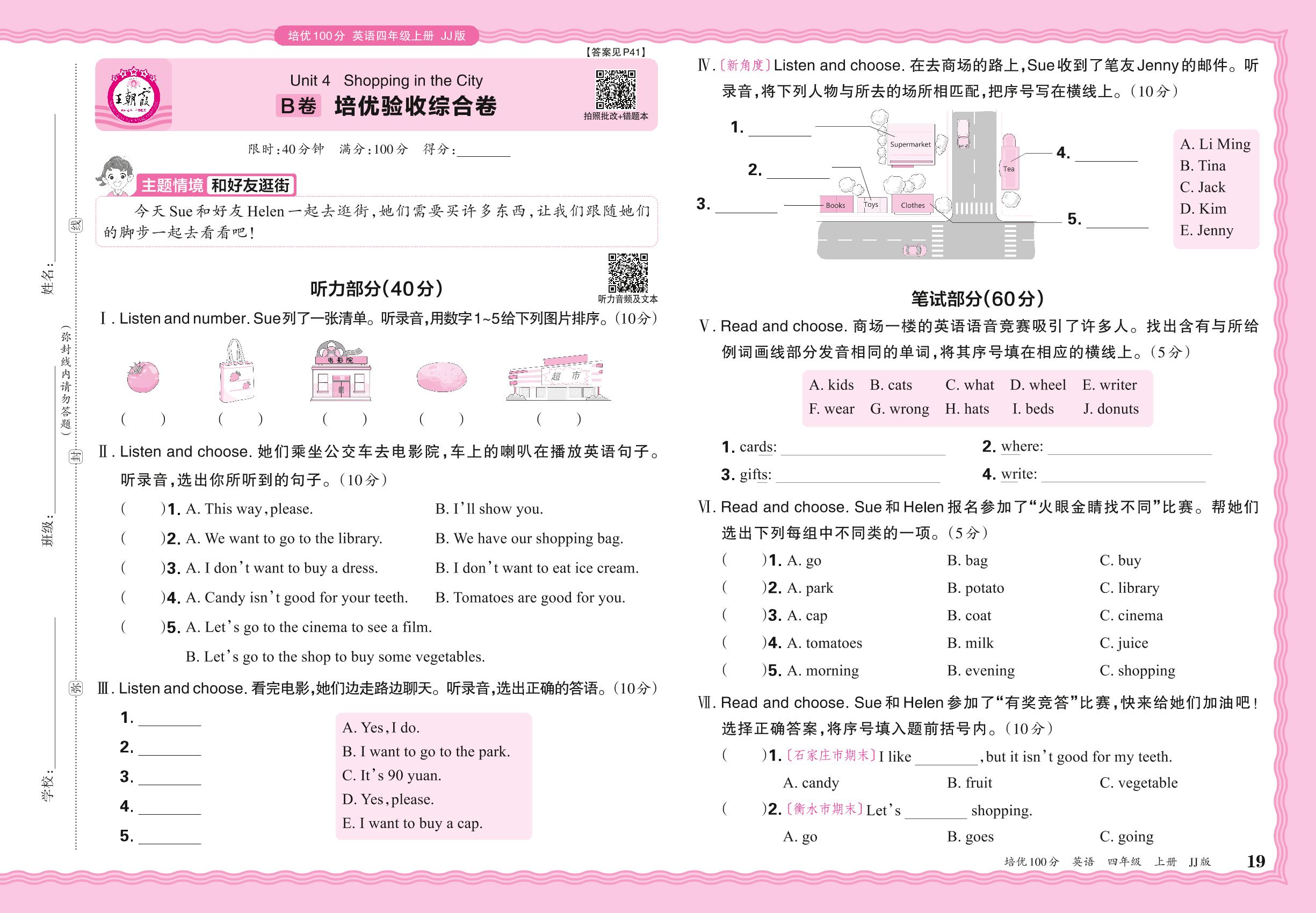 2024秋上册四年级英语冀教版 Unit 4 B卷 培优验收综合卷