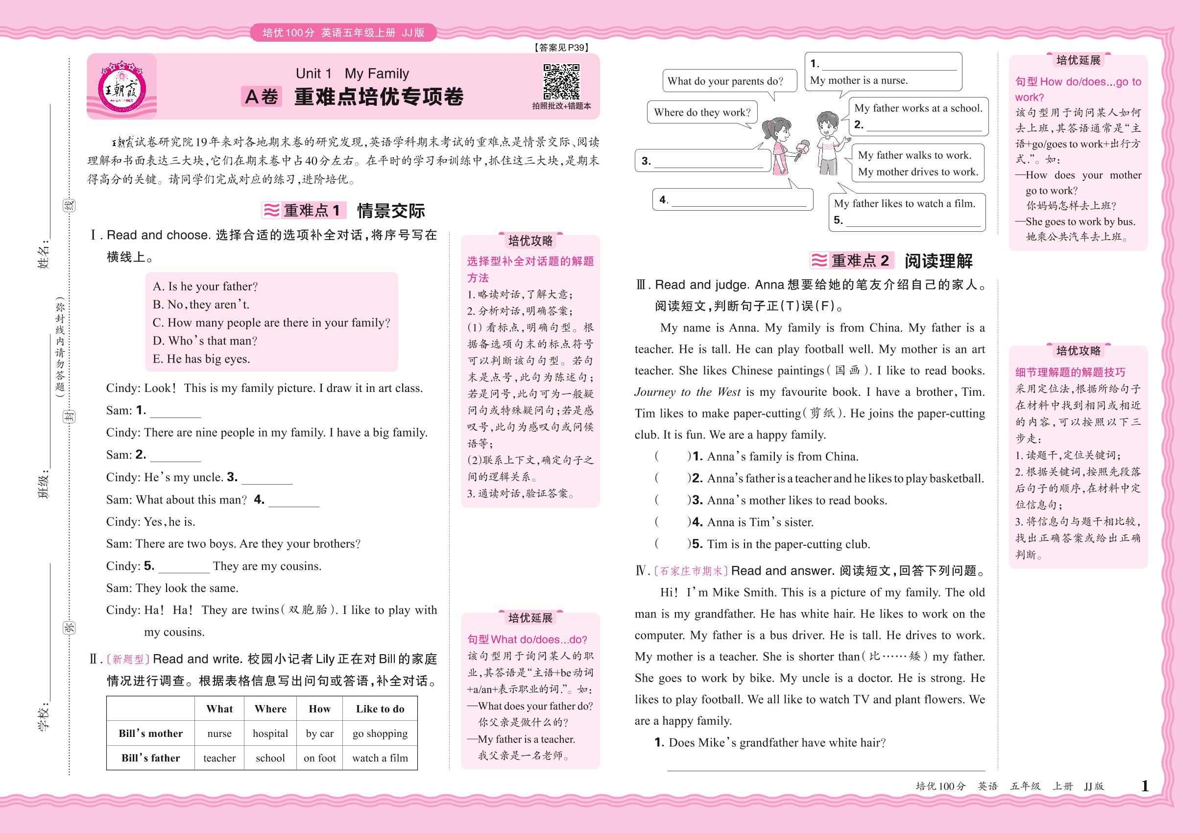 2024秋上册五年级英语冀教版 Unit 1 A卷 重难点培优专项卷