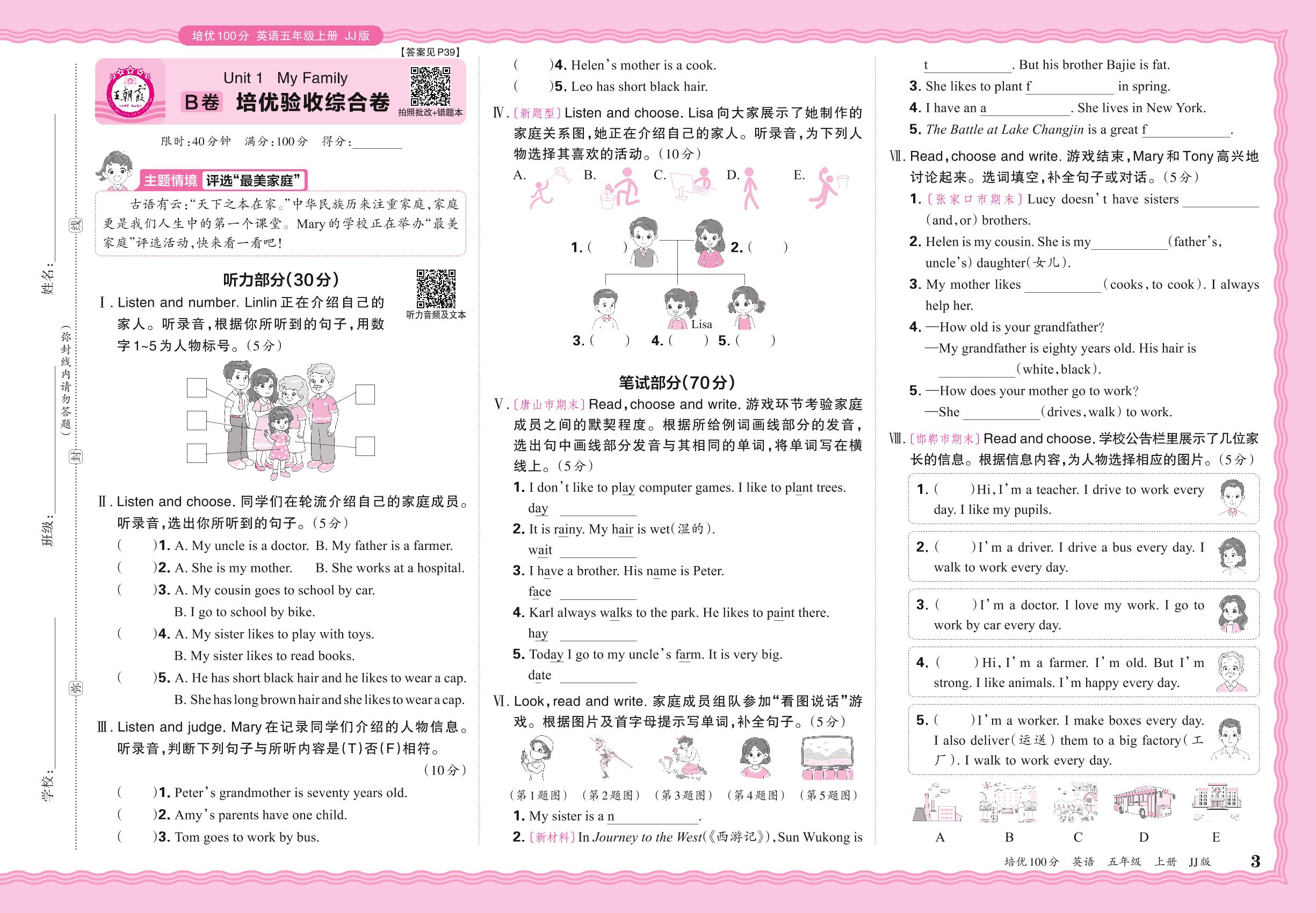 2024秋上册五年级英语冀教版 Unit 1 B卷 培优验收综合卷