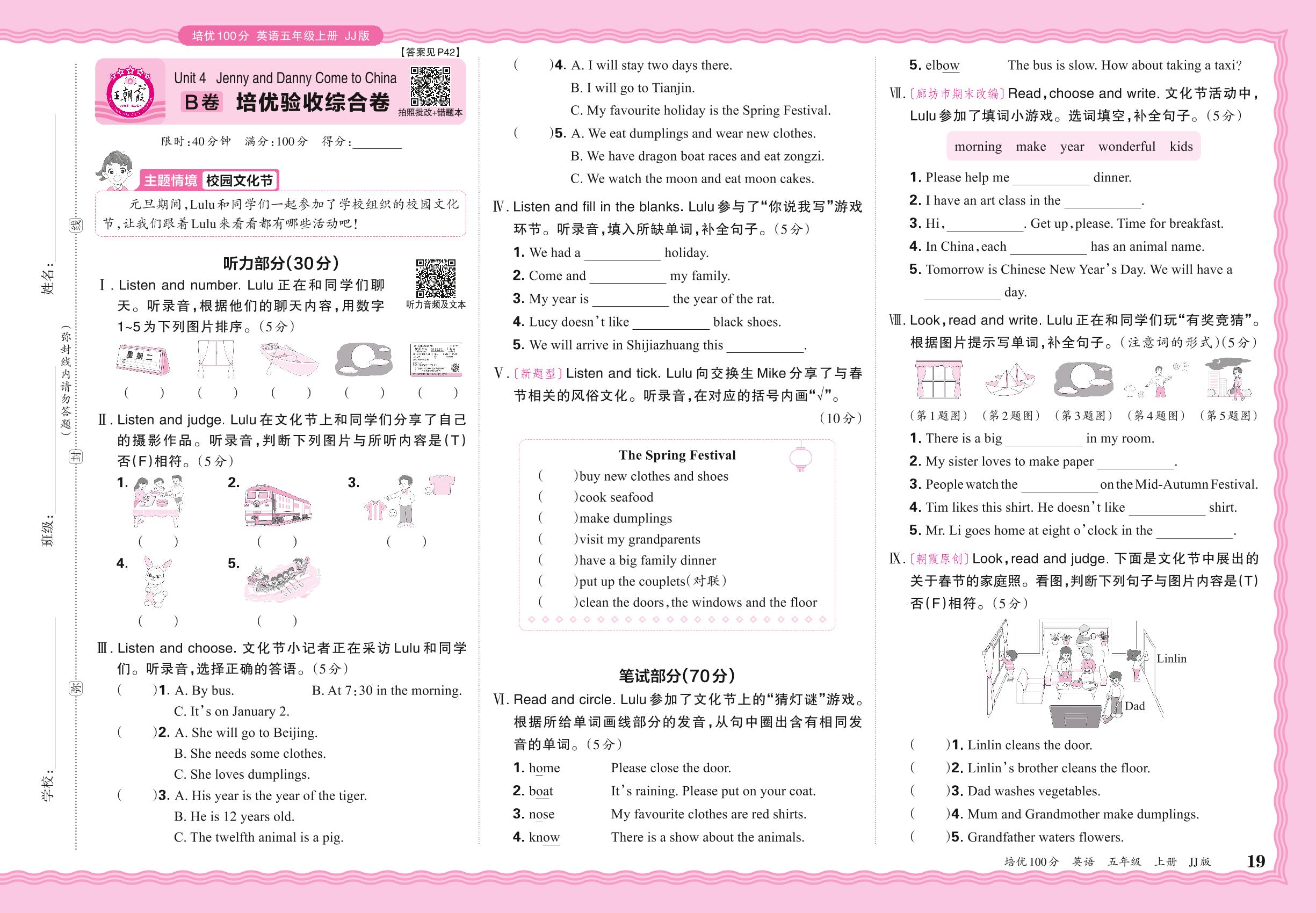 2024秋上册五年级英语冀教版 Unit 4 B卷 培优验收综合卷