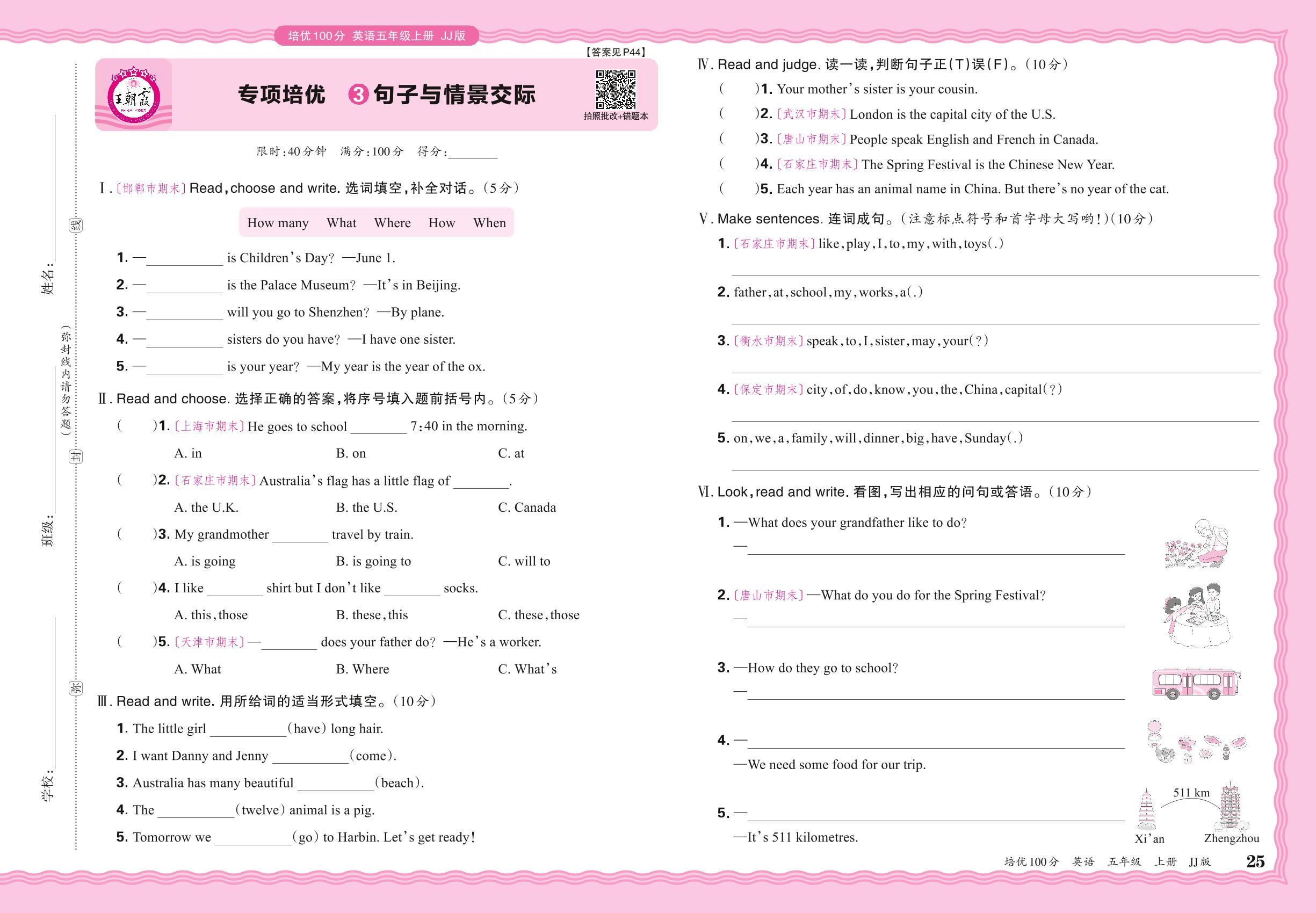 2024秋上册五年级英语冀教版 期末专项卷PY版·句子与情景交际【3】