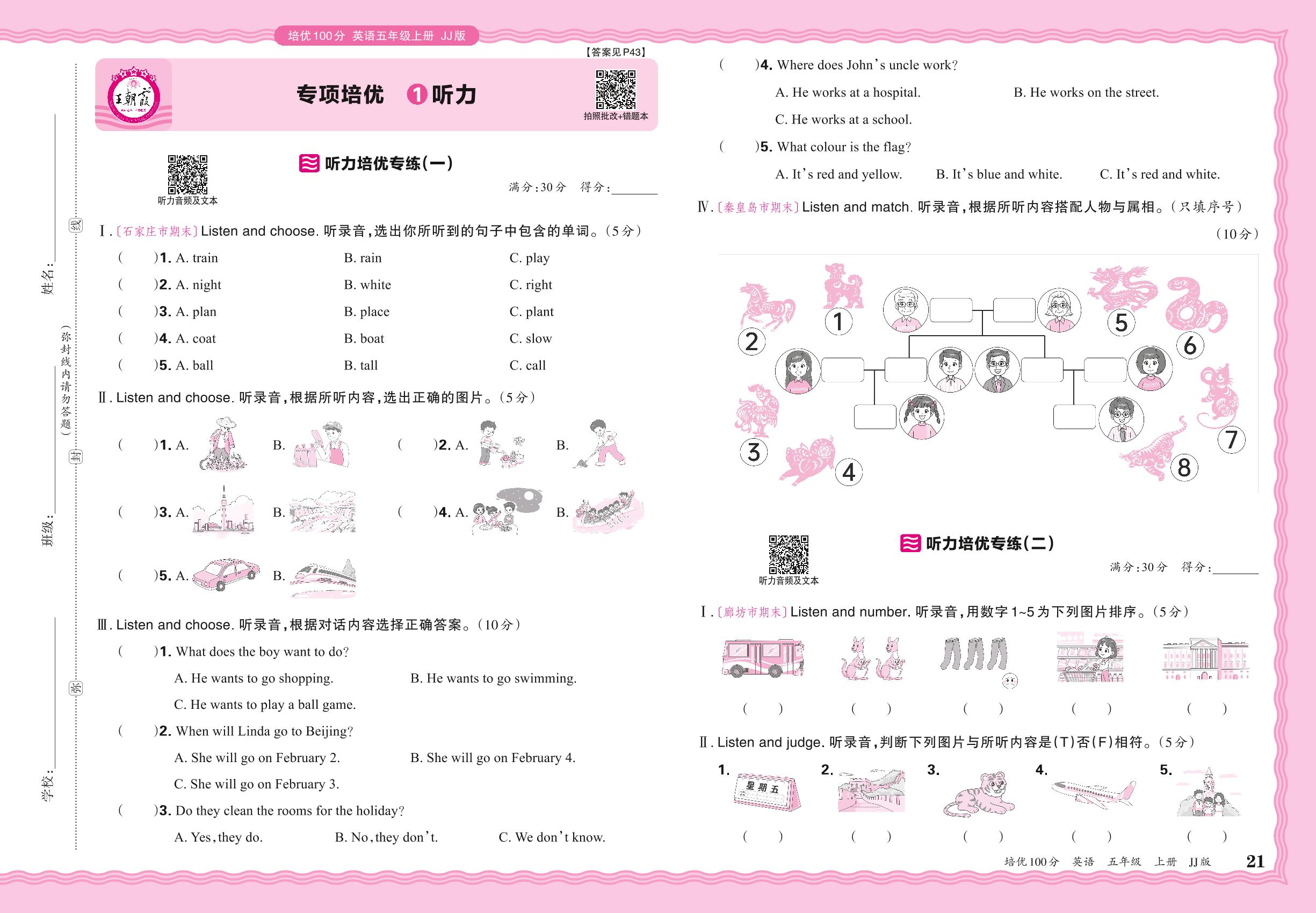 2024秋上册五年级英语冀教版 期末专项卷PY版·听力【1】