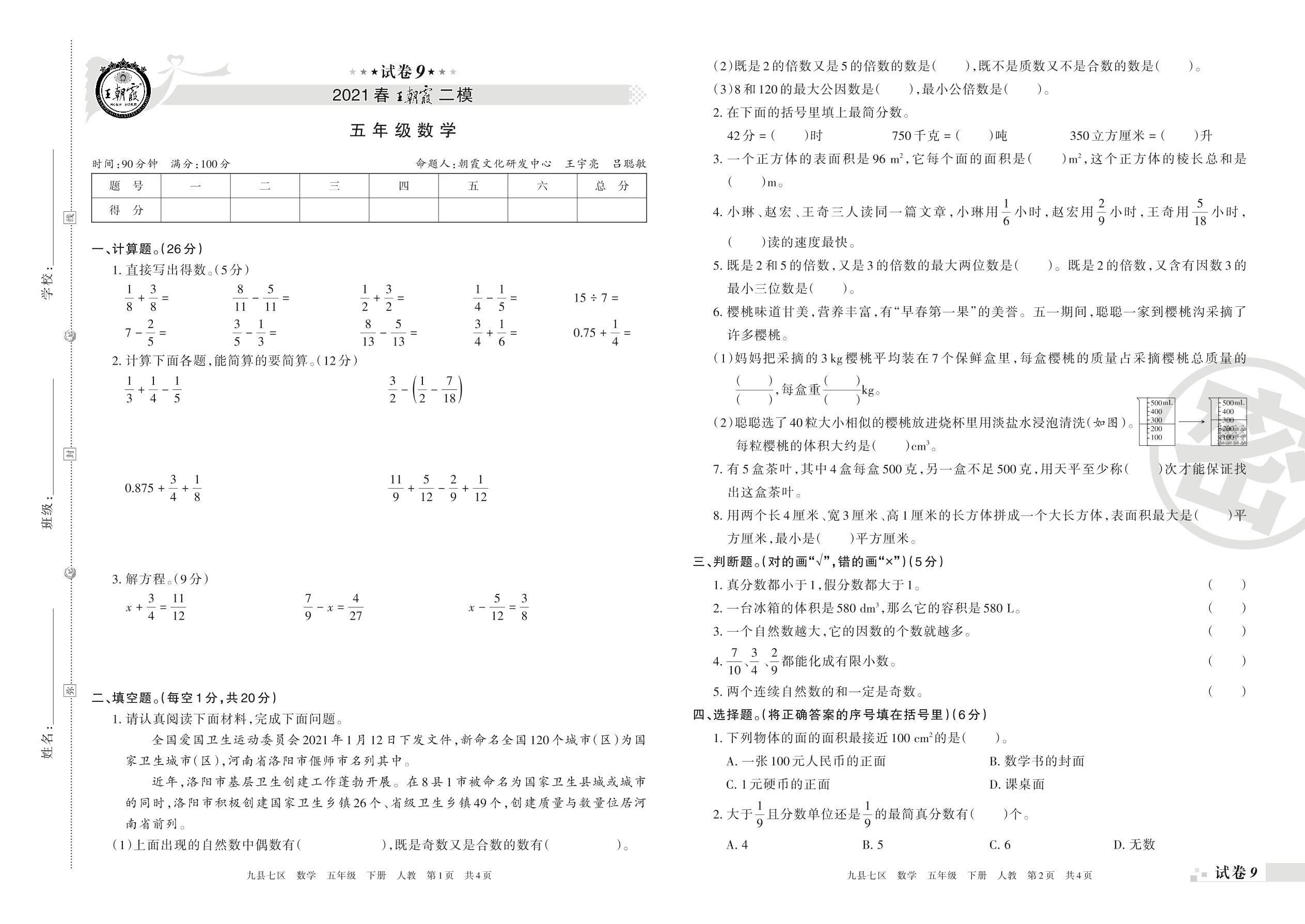 王朝霞期末模拟卷五年级下册数学(人教版)_R210804162541【9】