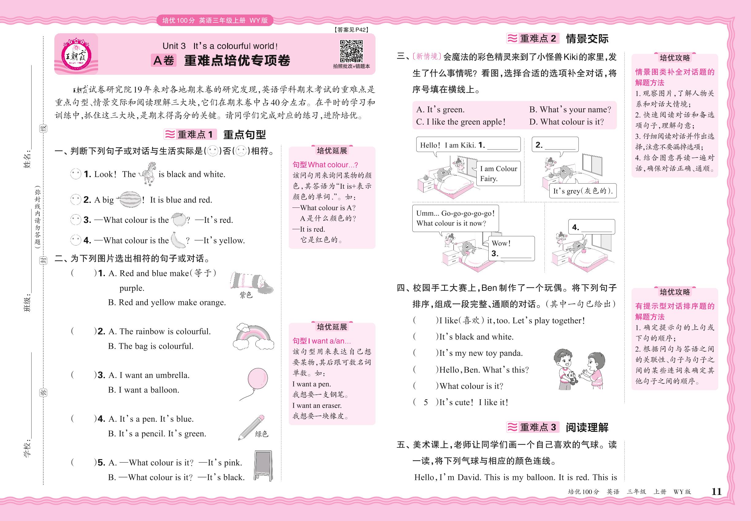 2024秋上册三年级英语外研版(三起始) Unit 3 A卷 重难点培优专项卷