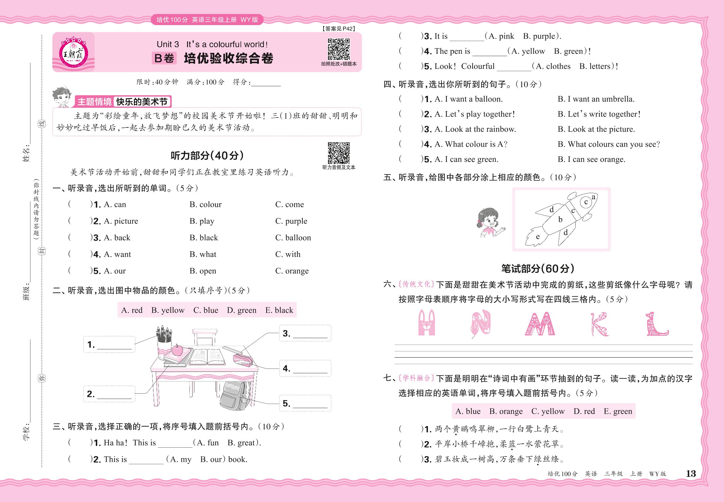 2024秋上册三年级英语外研版(三起始) Unit 3 B卷 培优验收综合卷