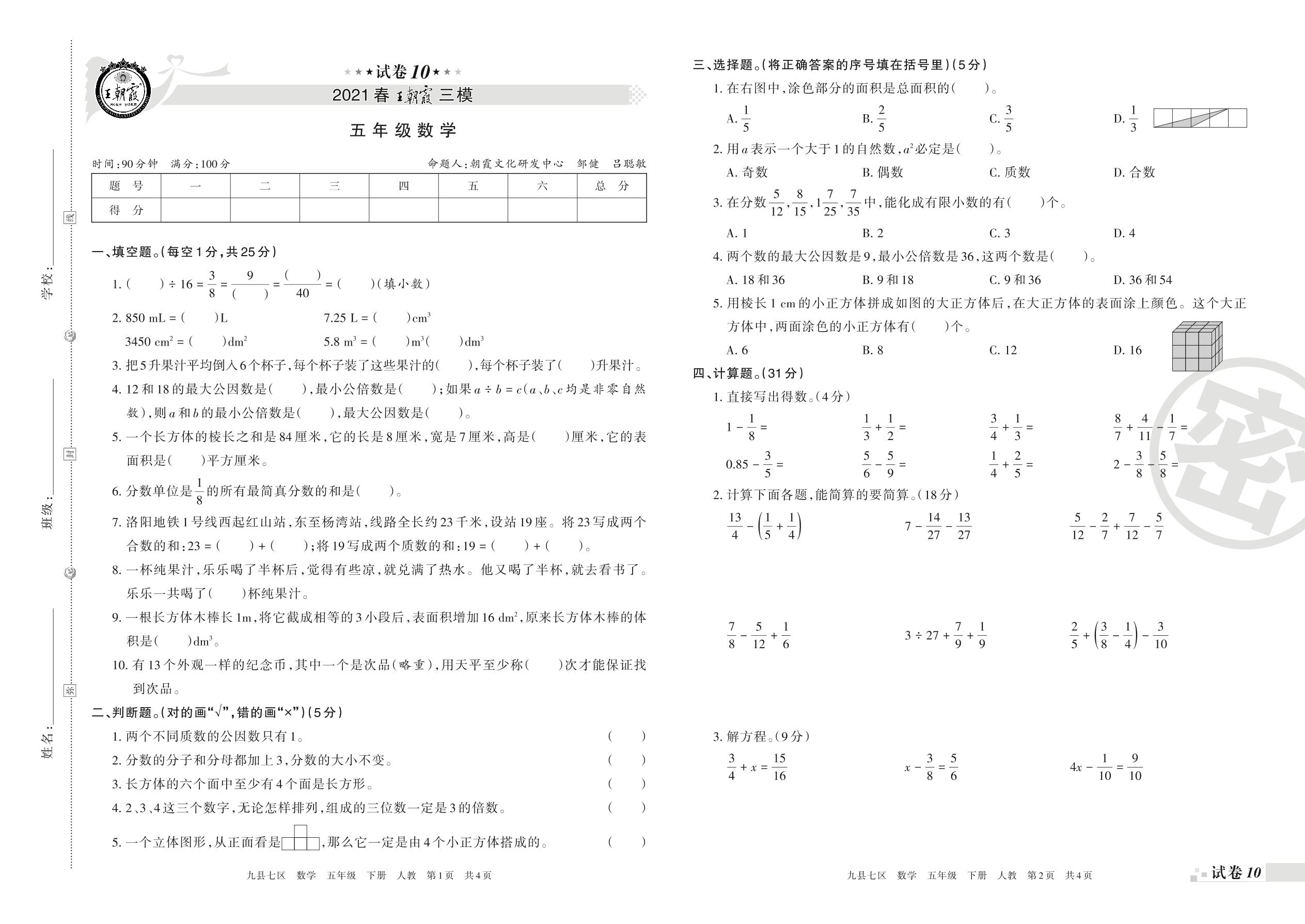 王朝霞期末模拟卷五年级下册数学(人教版)_R210804162548【10】