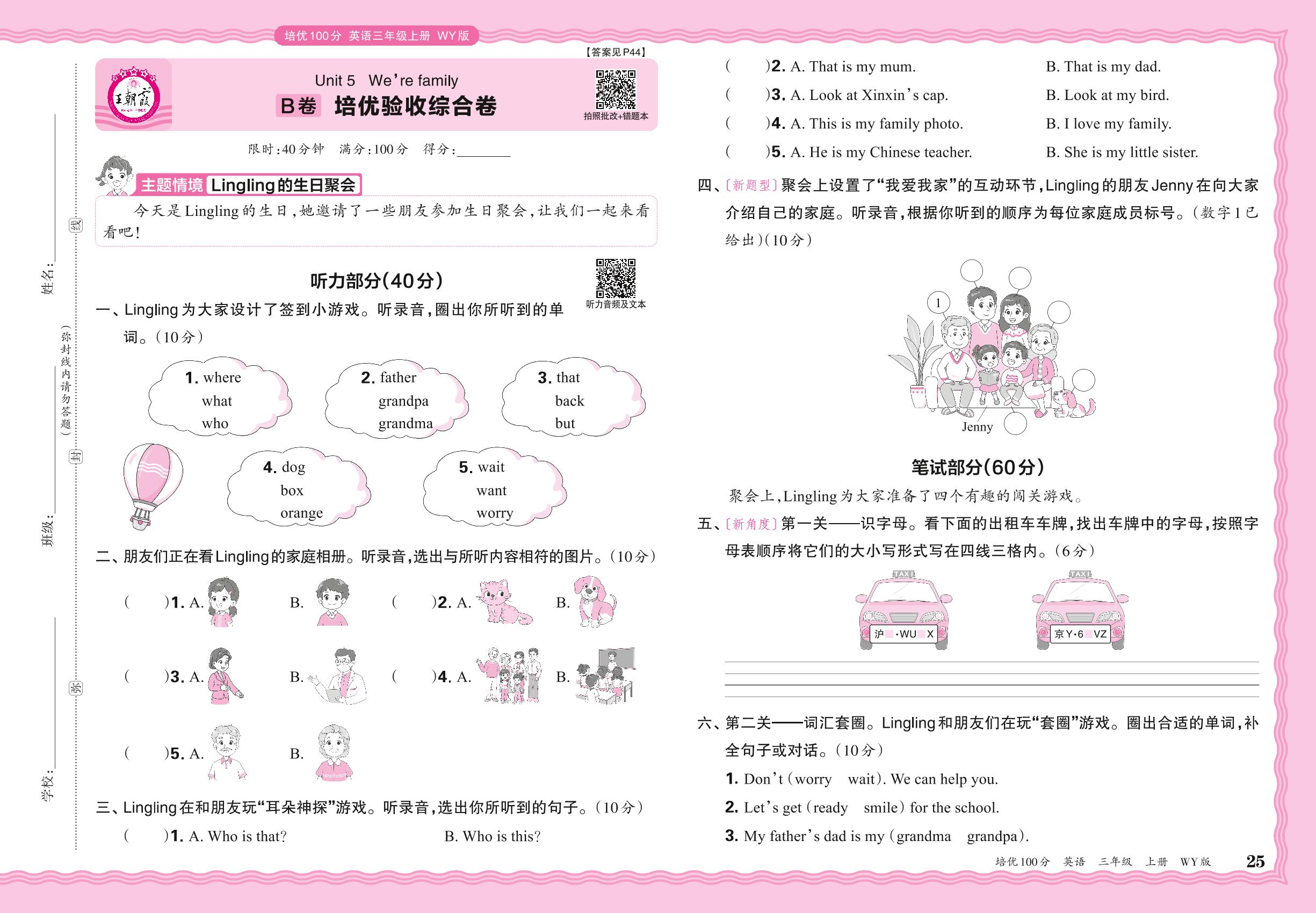 2024秋上册三年级英语外研版(三起始) Unit 5 B卷 培优验收综合卷