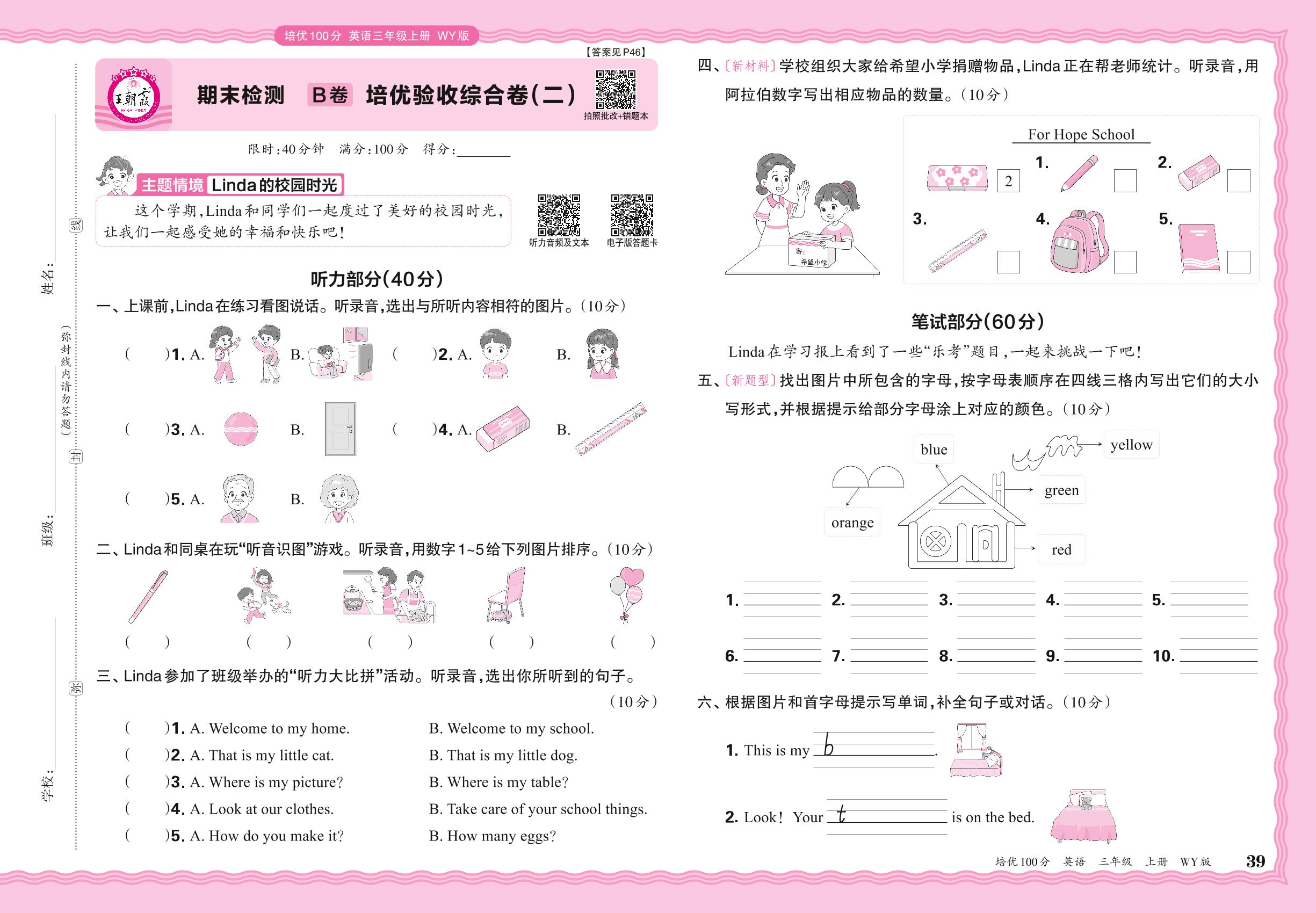 2024秋上册三年级英语外研版(三起始) 期末检测B卷 培优验收综合卷(二)