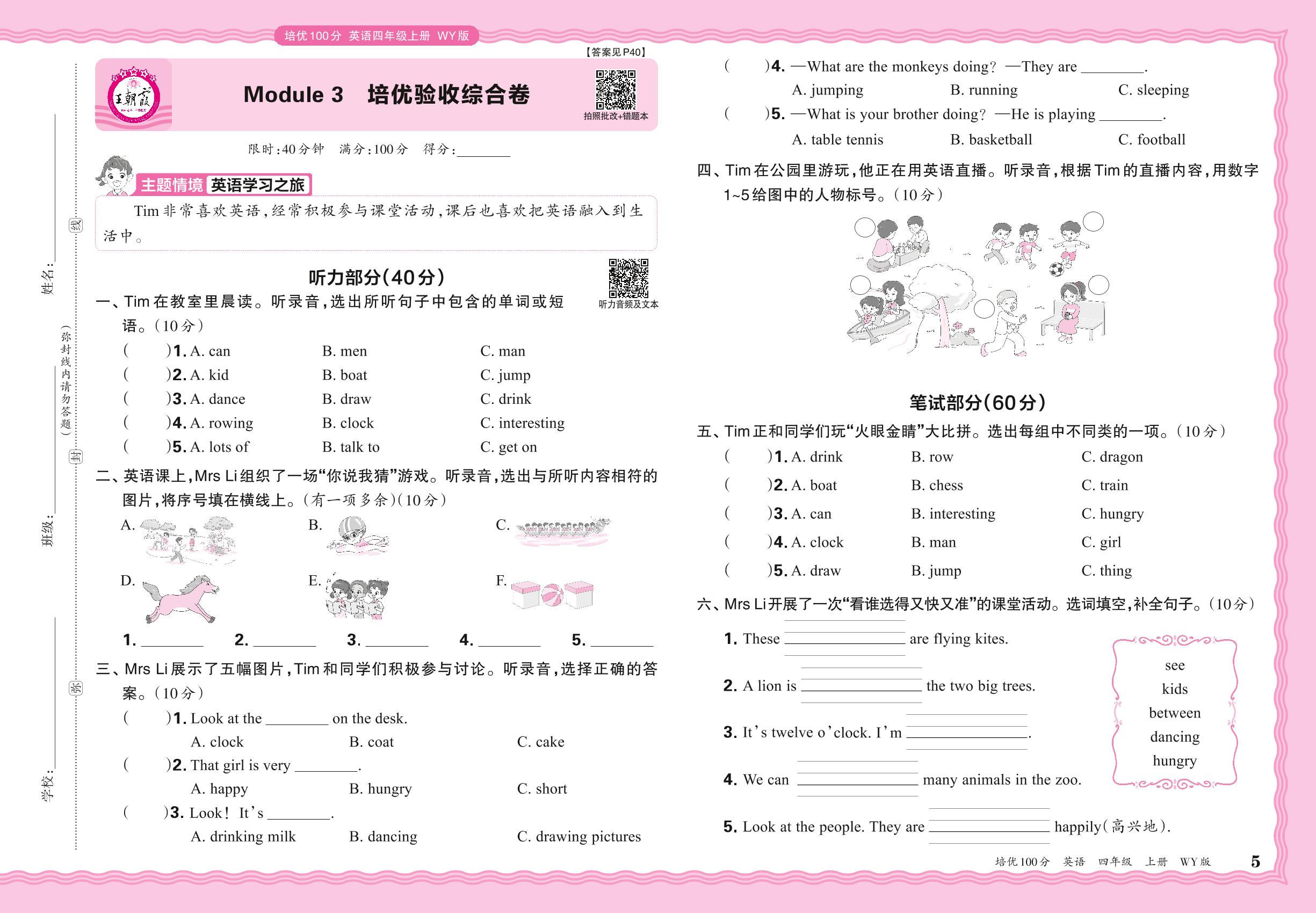 2024秋上册四年级英语外研版(三起始) Module 3 培优验收综合卷