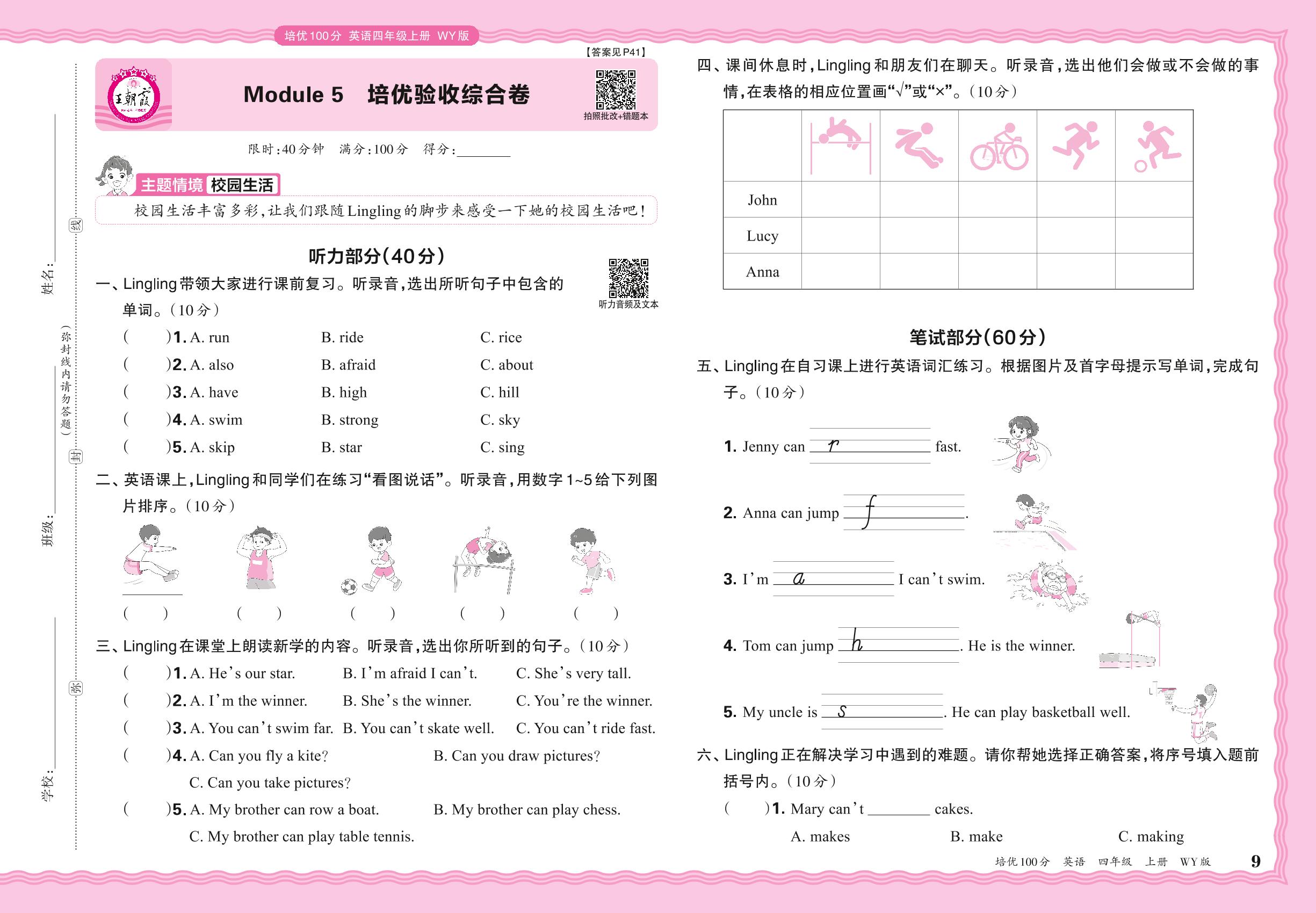 2024秋上册四年级英语外研版(三起始) Module 5 培优验收综合卷