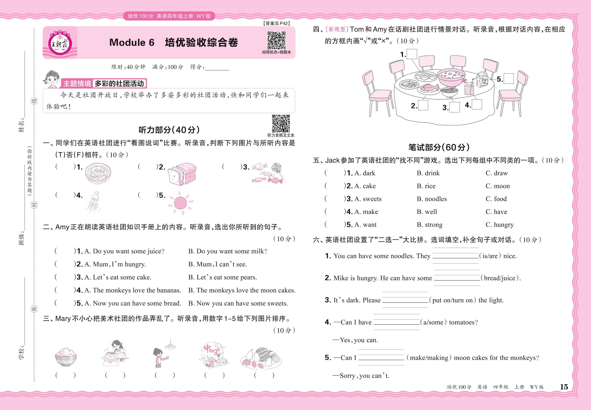 2024秋上册四年级英语外研版(三起始) Module 6 培优验收综合卷