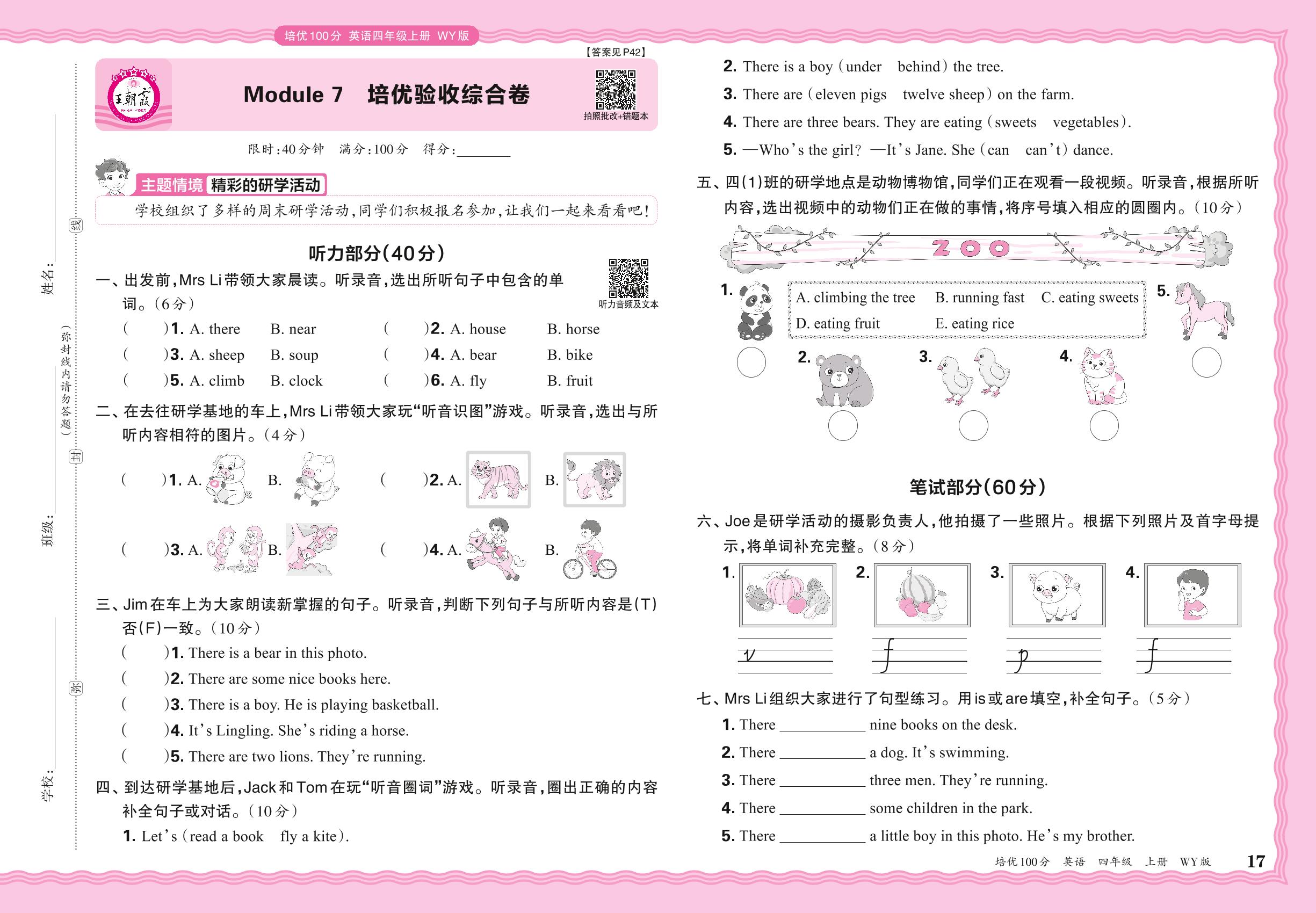 2024秋上册四年级英语外研版(三起始) Module 7 培优验收综合卷