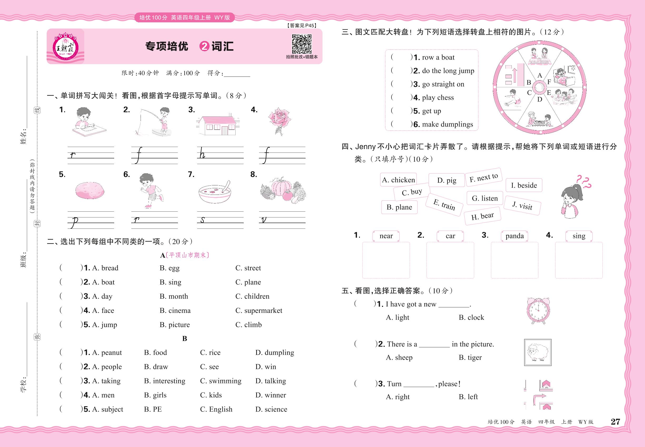 2024秋上册四年级英语外研版(三起始) 期末专项卷PY版·词汇【2】