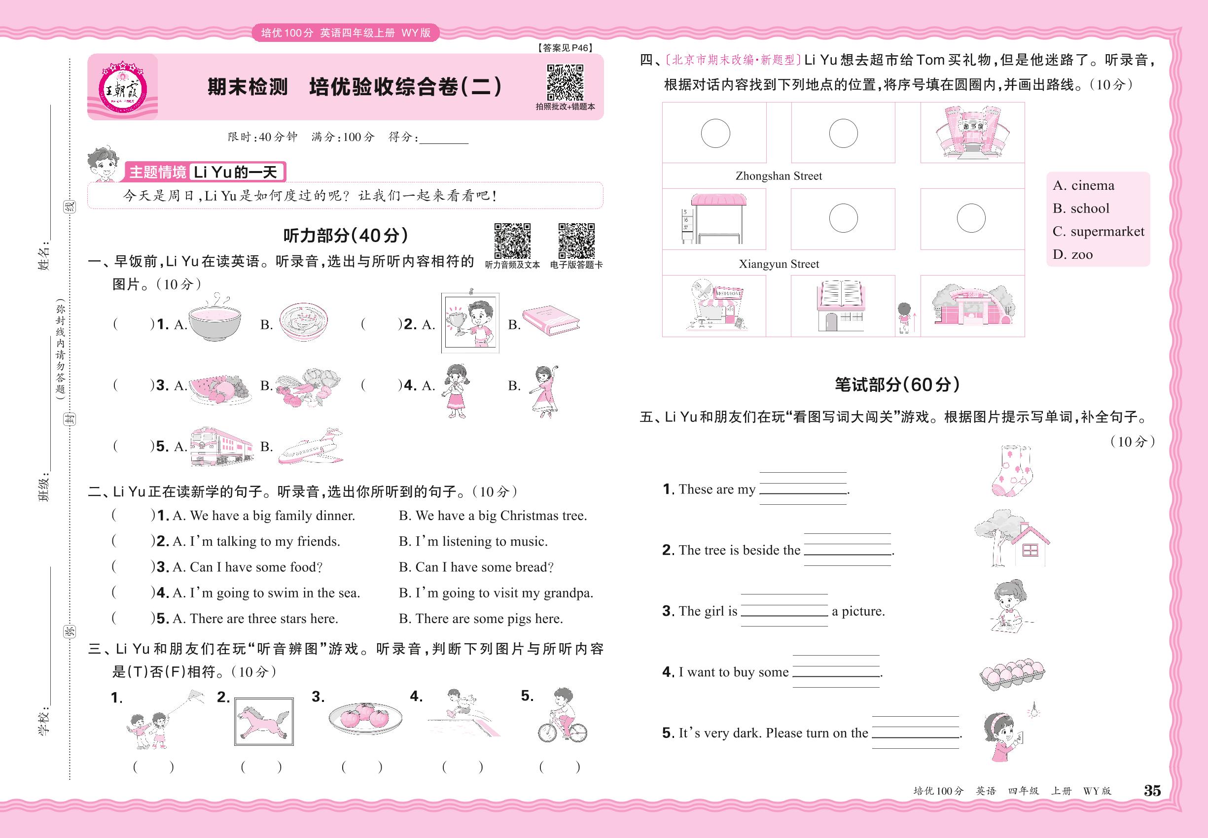 2024秋上册四年级英语外研版(三起始) 期末检测 培优验收综合卷(二)