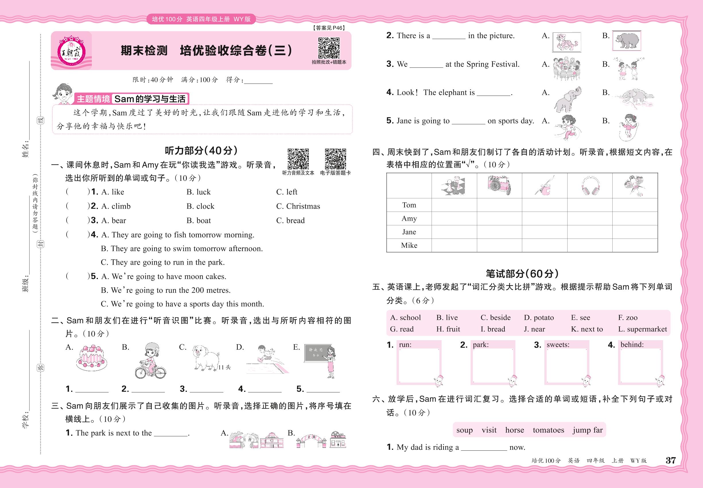 2024秋上册四年级英语外研版(三起始) 期末检测 培优验收综合卷(三)