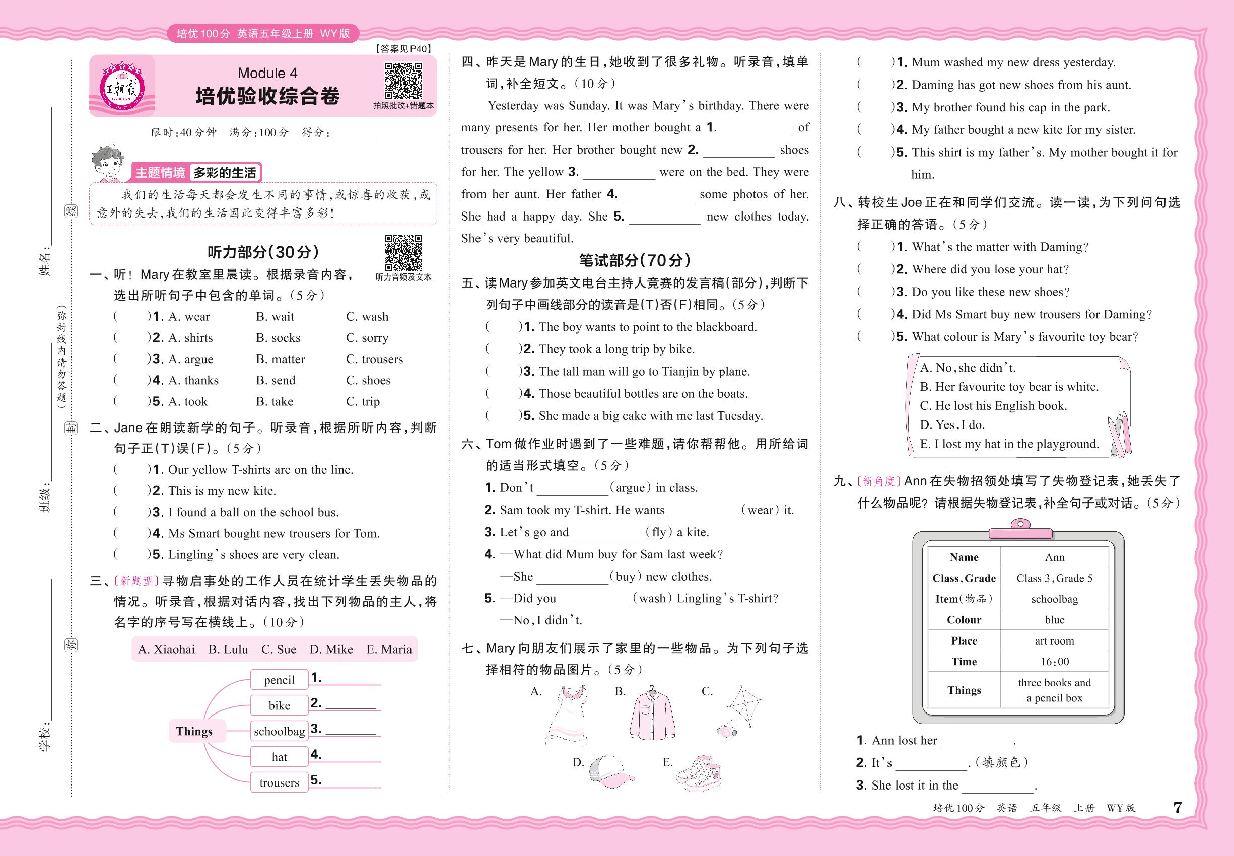 2024秋上册五年级英语外研版(三起始) Module 4 培优验收综合卷