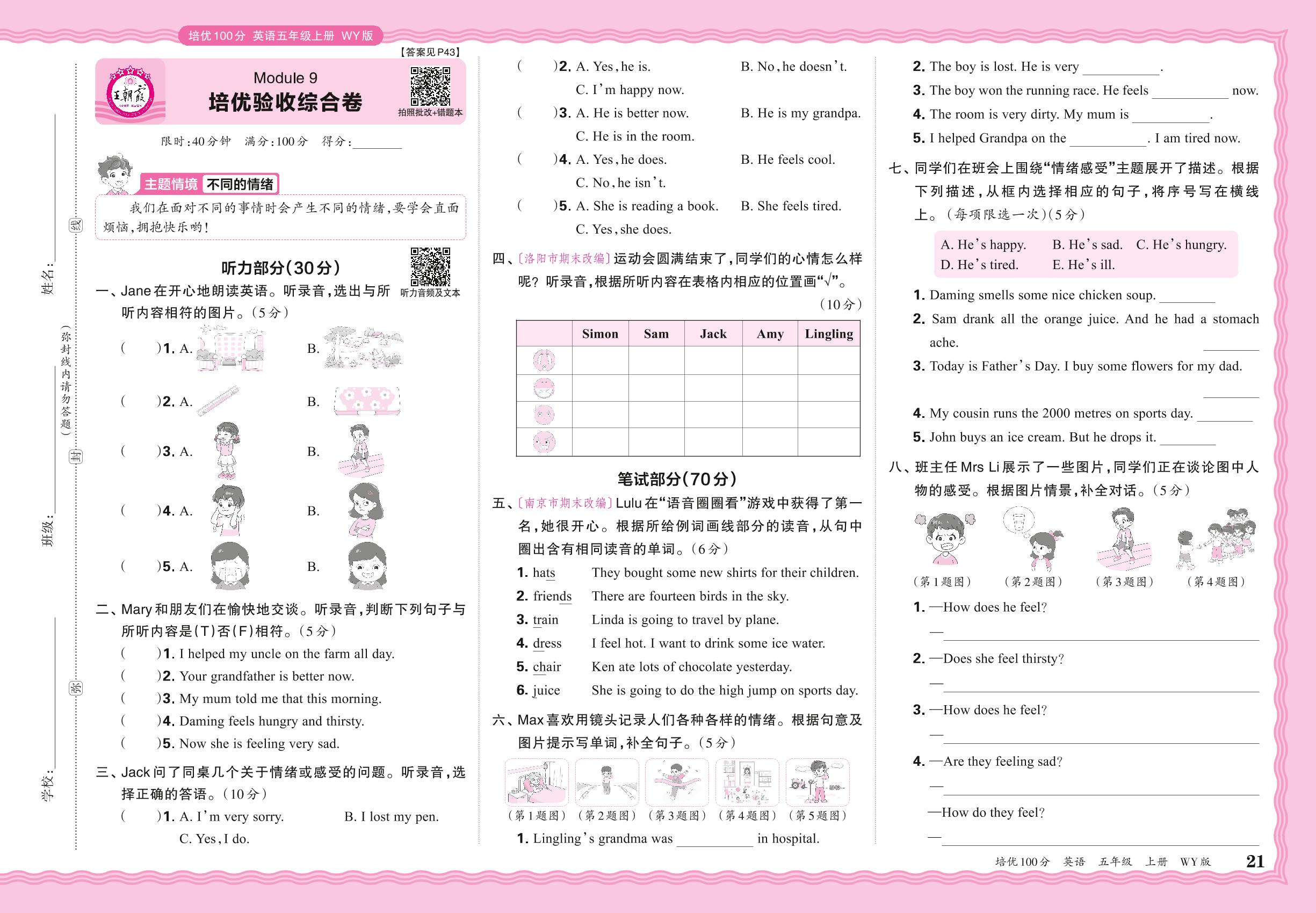 2024秋上册五年级英语外研版(三起始) Module 9 培优验收综合卷