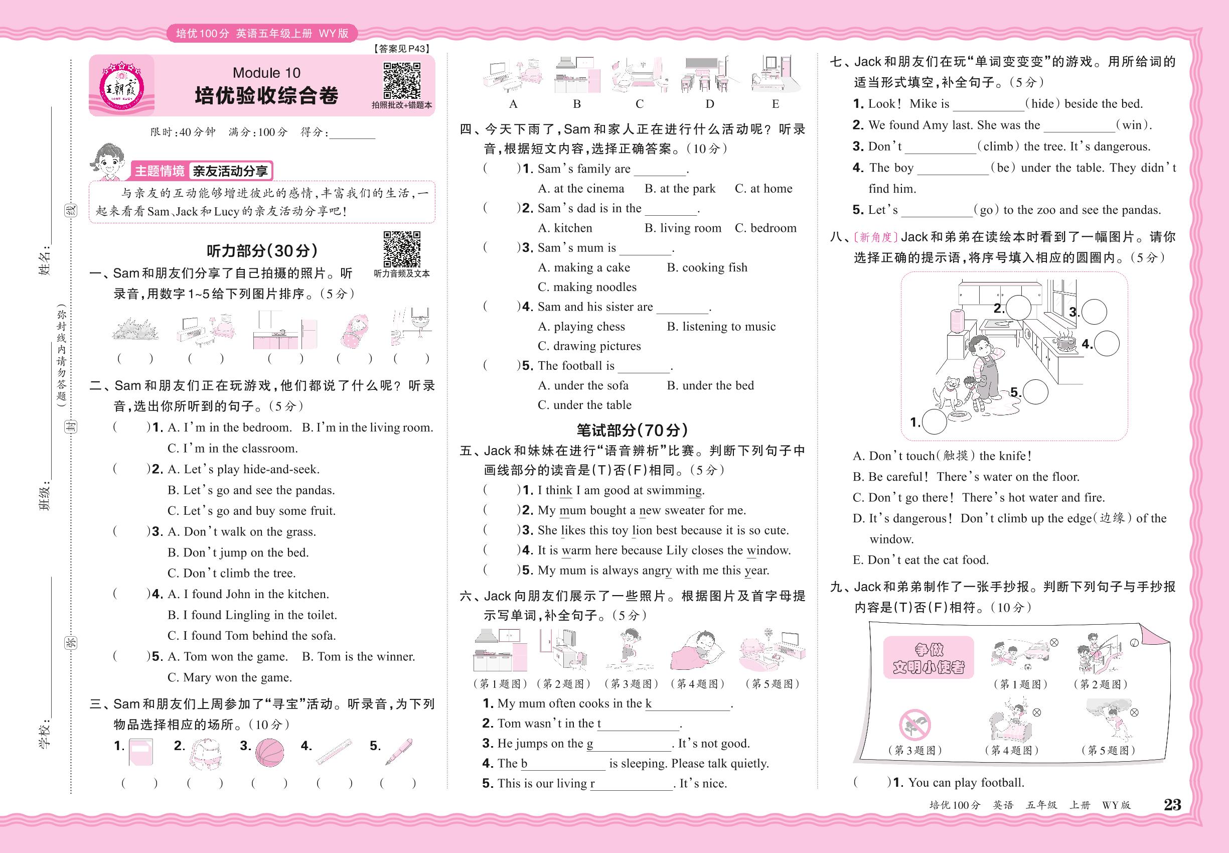 2024秋上册五年级英语外研版(三起始) Module 10 培优验收综合卷