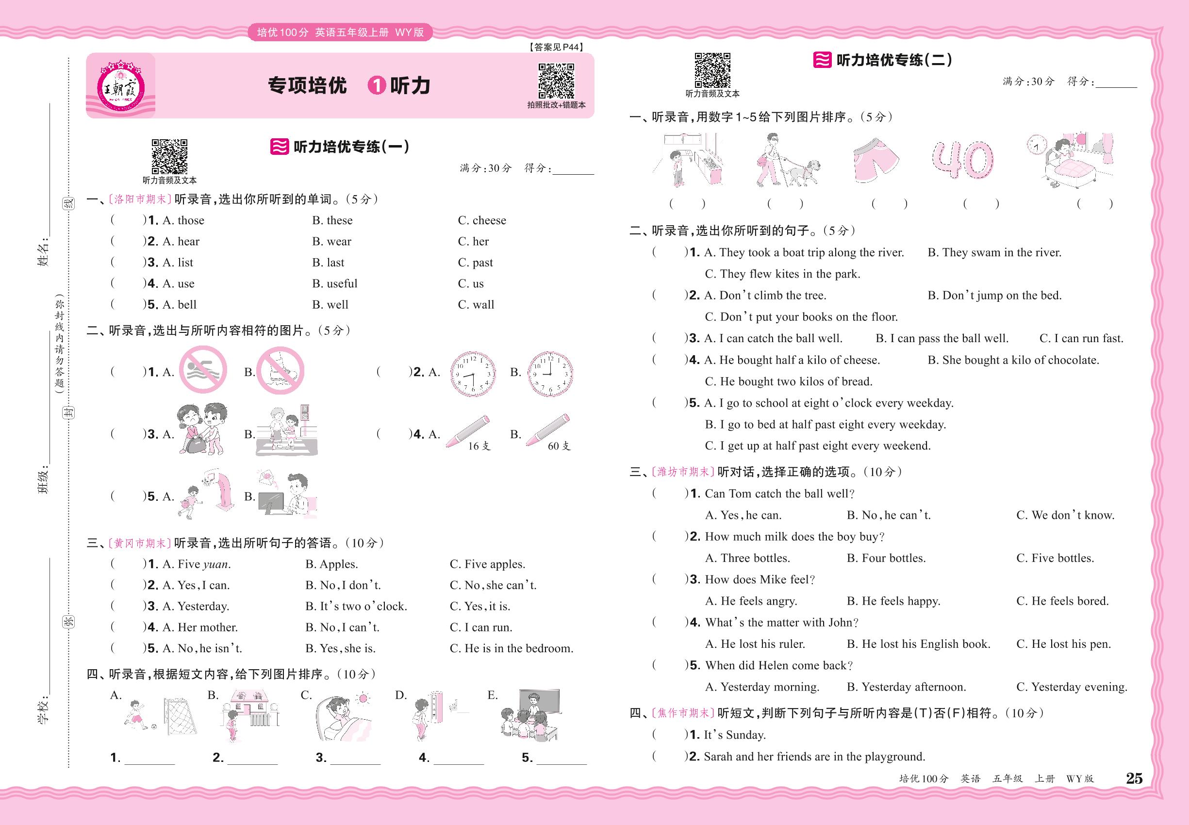 2024秋上册五年级英语外研版(三起始) 期末专项卷PY版·听力【1】