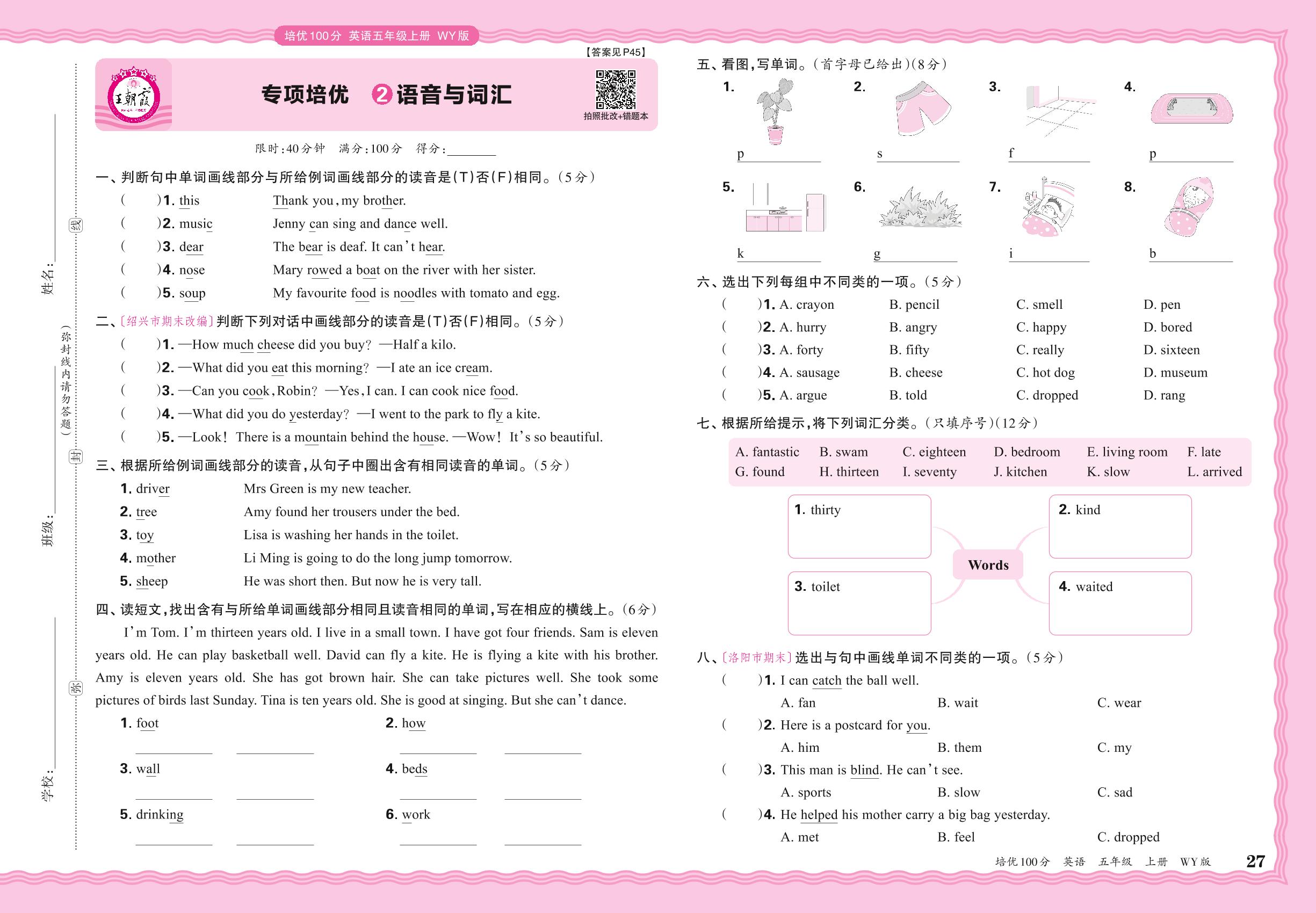 2024秋上册五年级英语外研版(三起始) 期末专项卷PY版·语音与词汇【2】