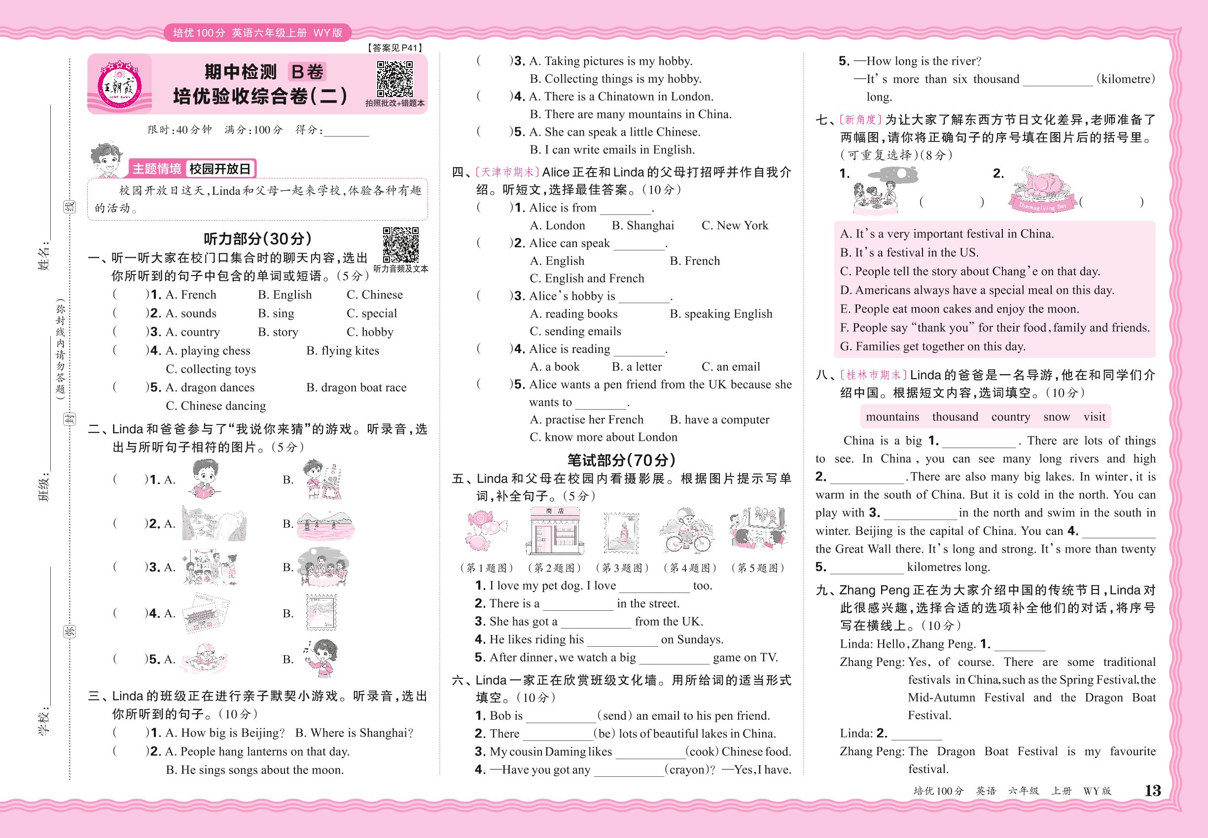 2024秋上册六年级英语外研版(三起始) 期中检测B卷 培优验收综合卷(二)