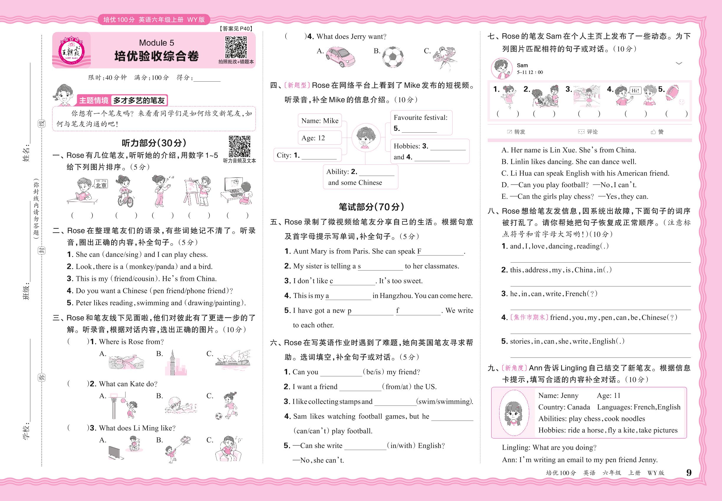 2024秋上册六年级英语外研版(三起始) Module 5 培优验收综合卷