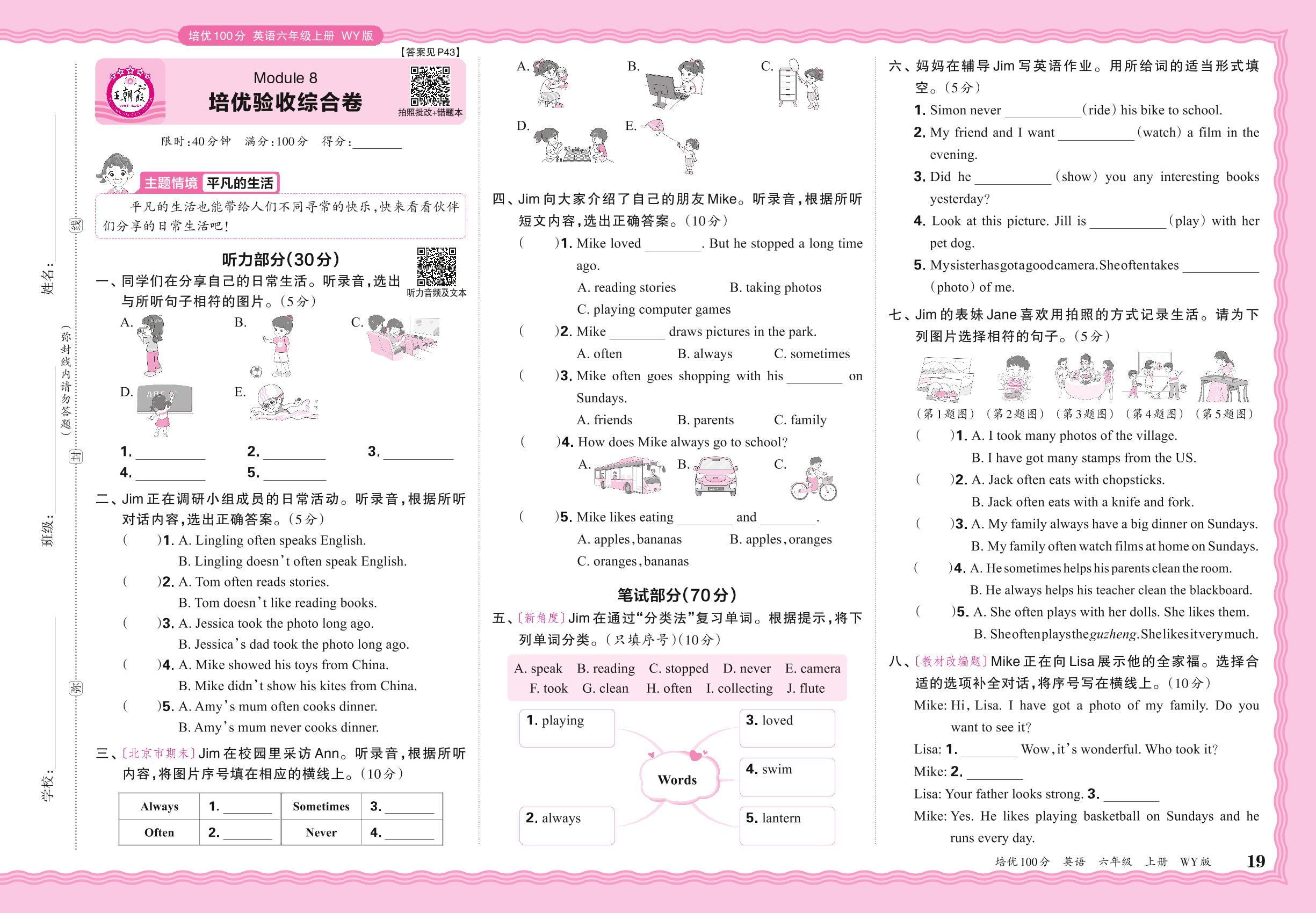 2024秋上册六年级英语外研版(三起始) Module 8 培优验收综合卷