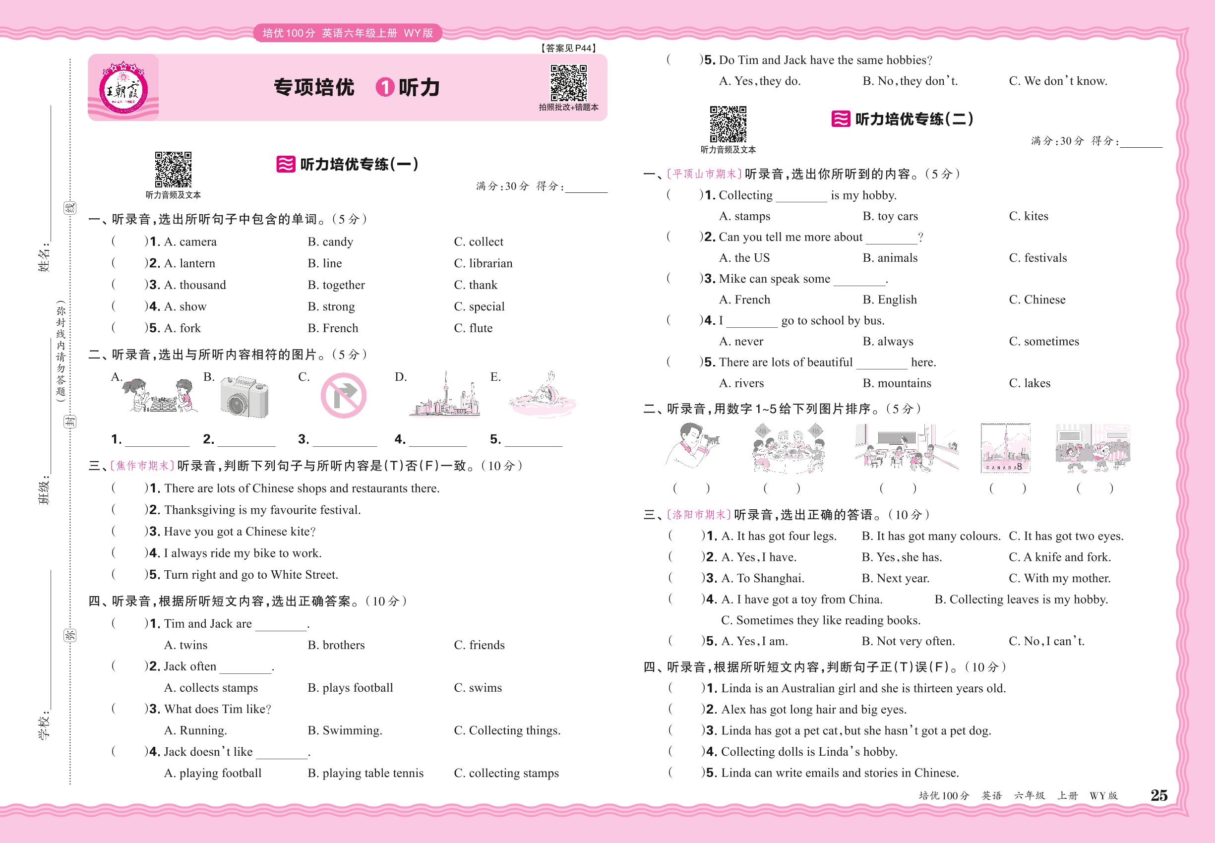 2024秋上册六年级英语外研版(三起始) 期末专项卷PY版·听力【1】