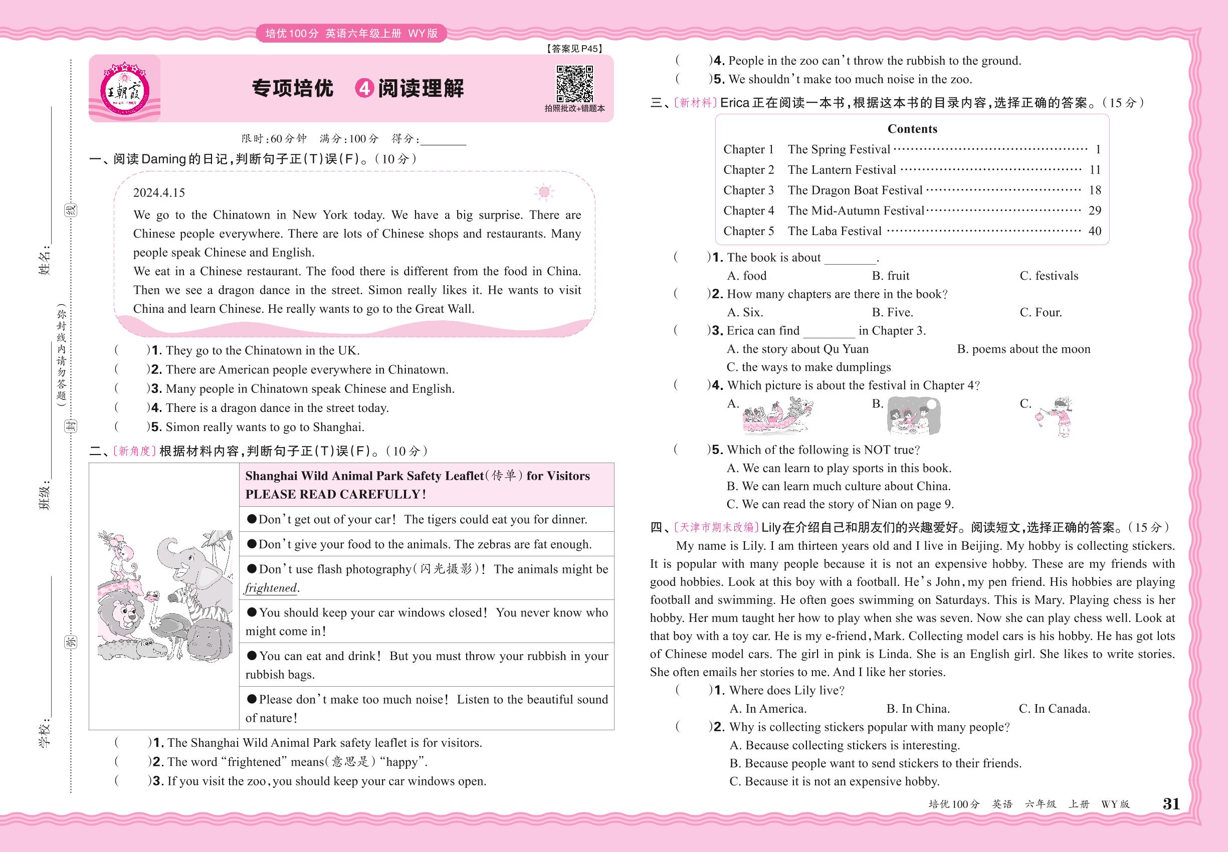 2024秋上册六年级英语外研版(三起始) 期末专项卷PY版·阅读理解【4】
