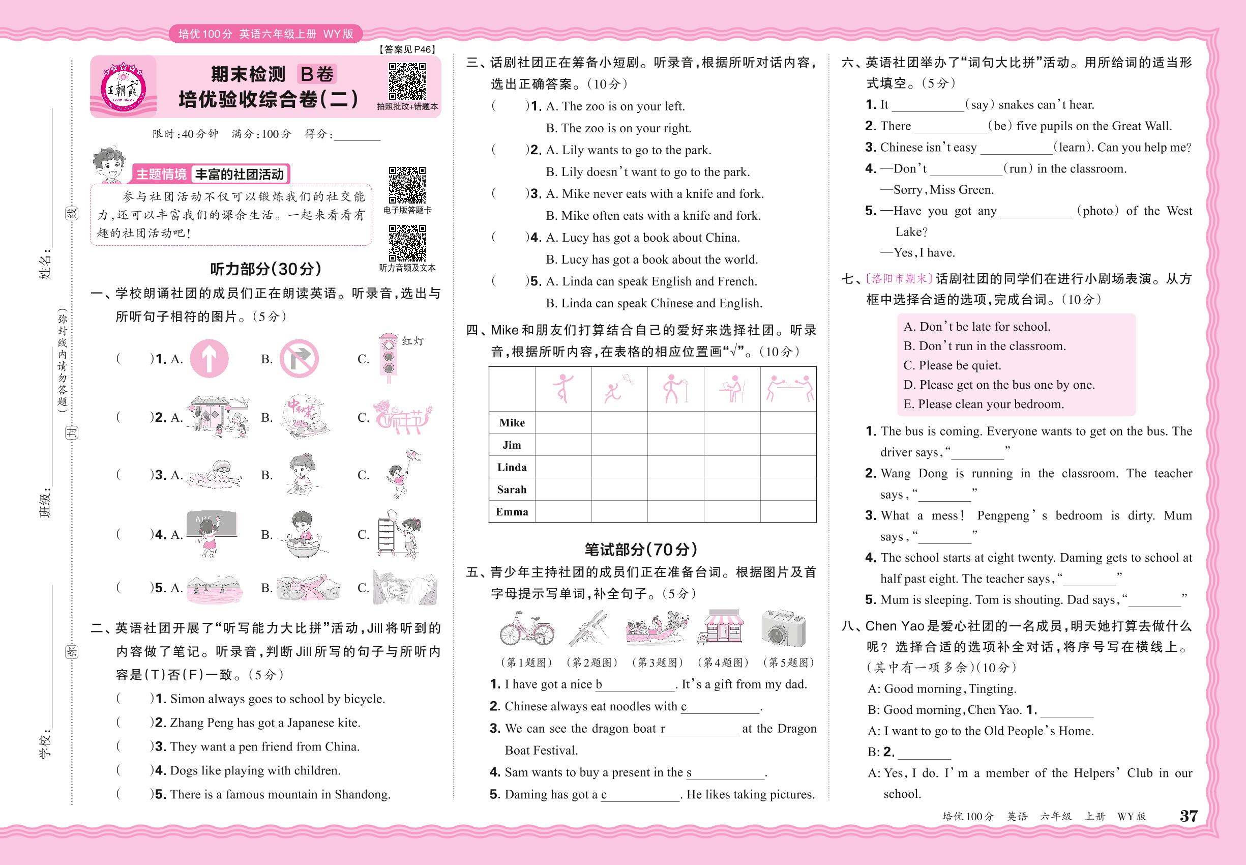 2024秋上册六年级英语外研版(三起始) 期末检测B卷 培优验收综合卷(二)