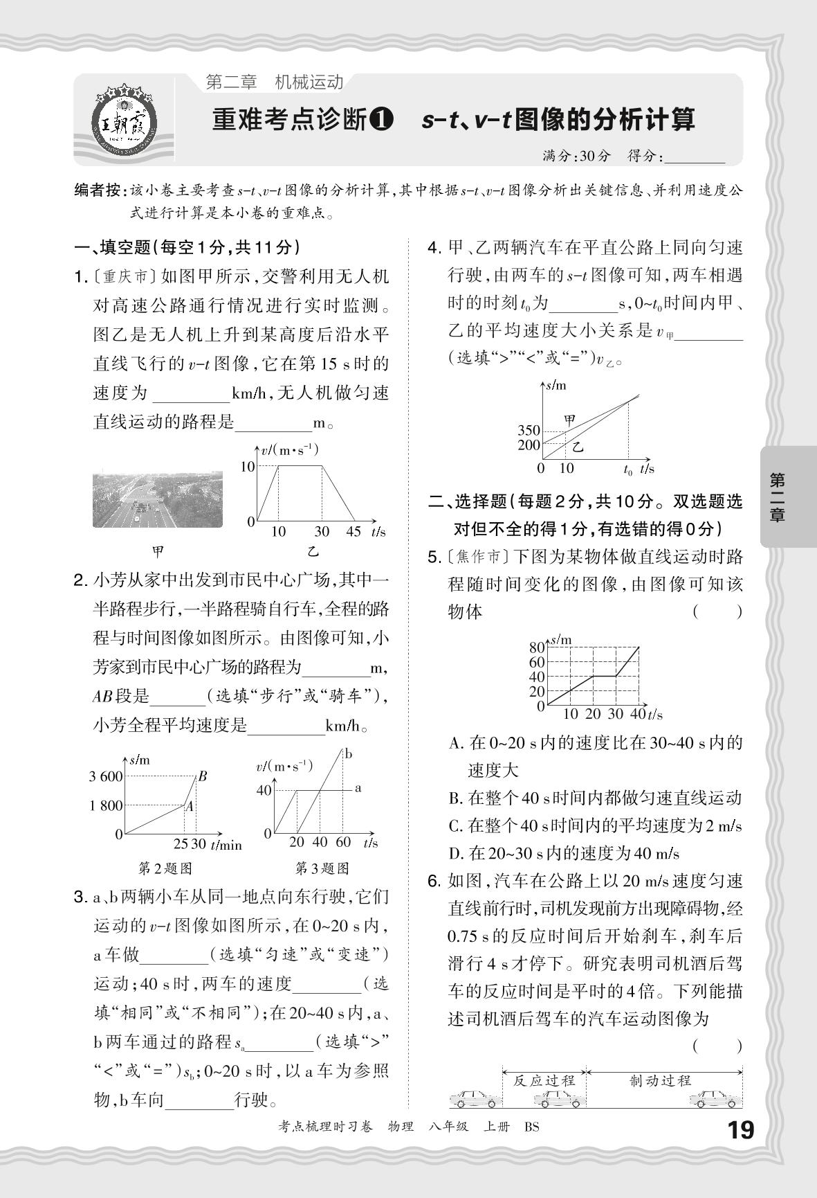 2024秋上册八年级物理北师版 第二章 重难考点诊断1 s-t、v-t图像的分析计算