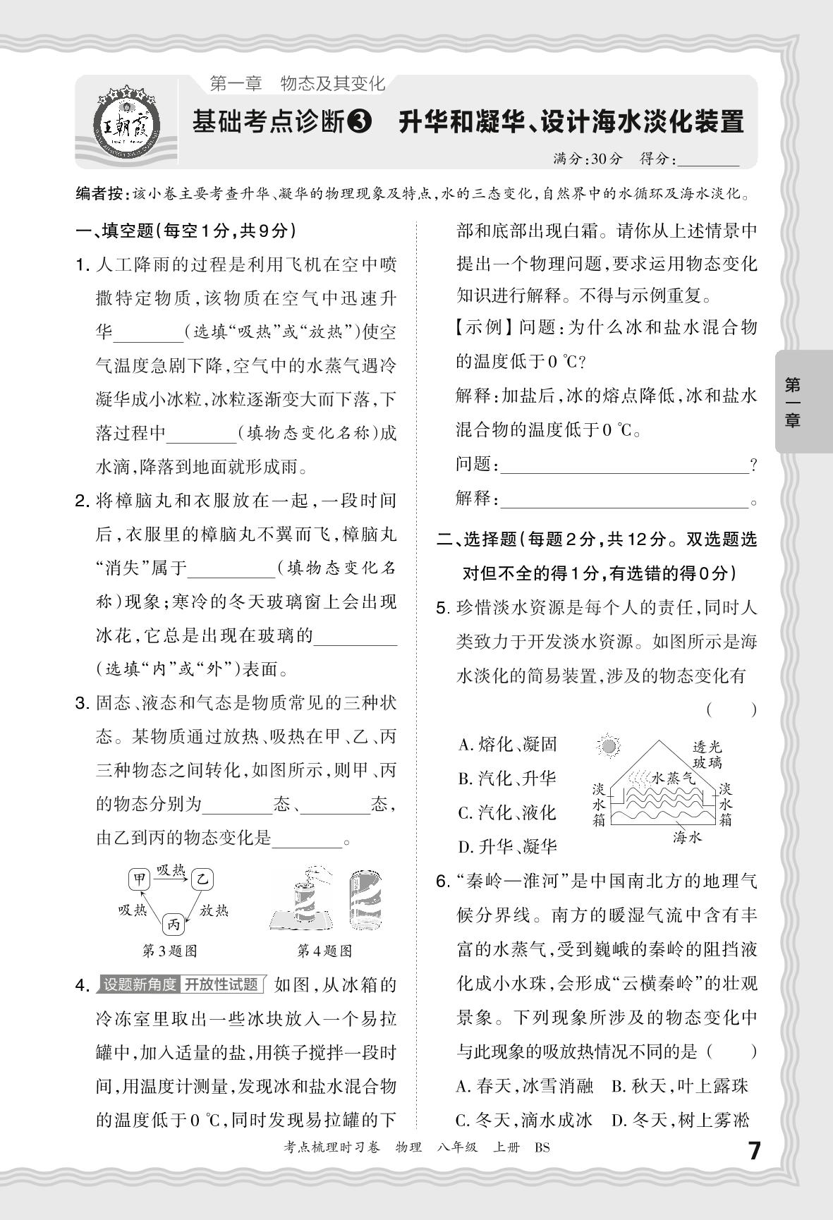2024秋上册八年级物理北师版 第一章 基础考点诊断3 升华和凝华、设计海水淡化装置