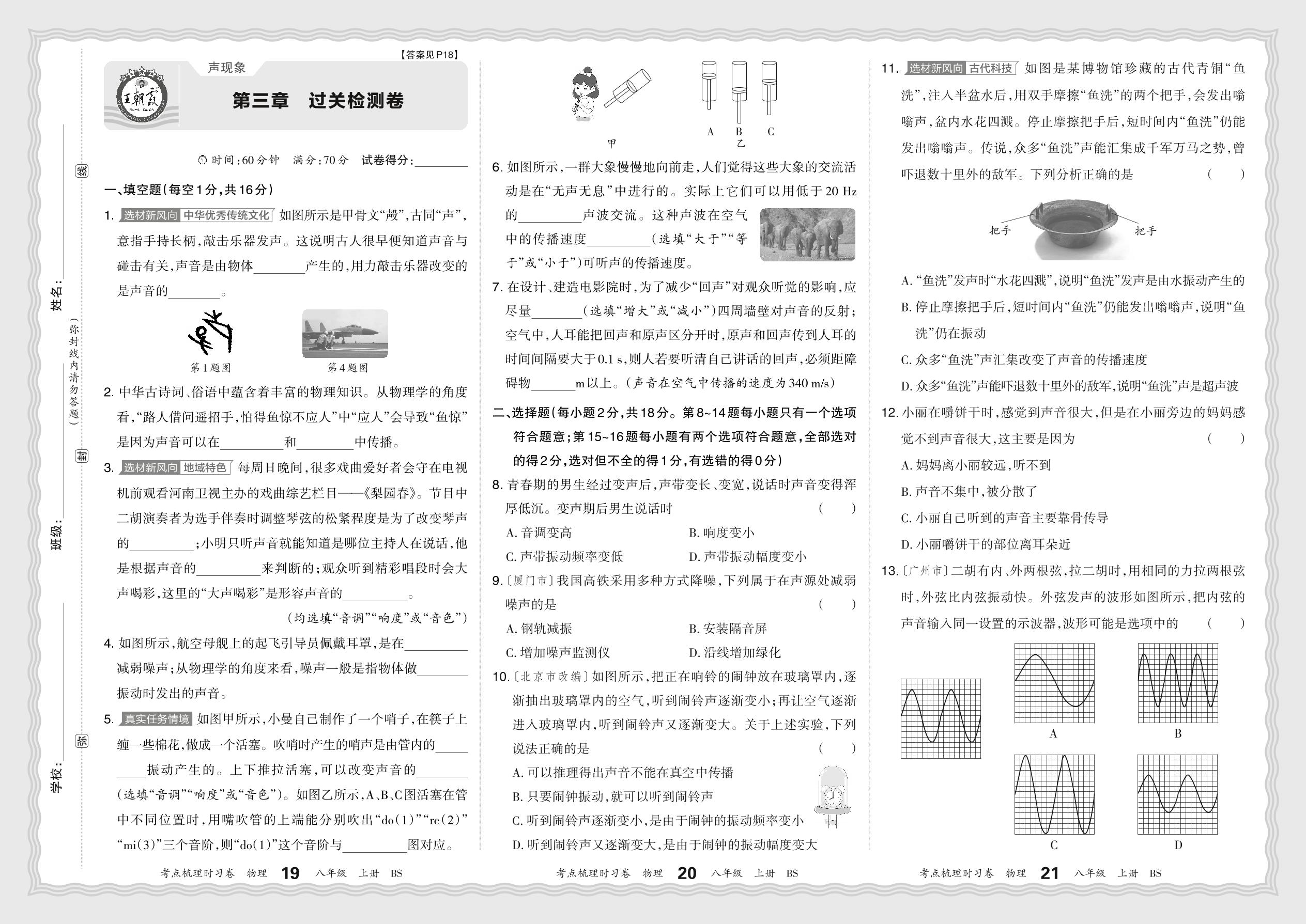 2024秋上册八年级物理北师版 第三章 过关检测卷