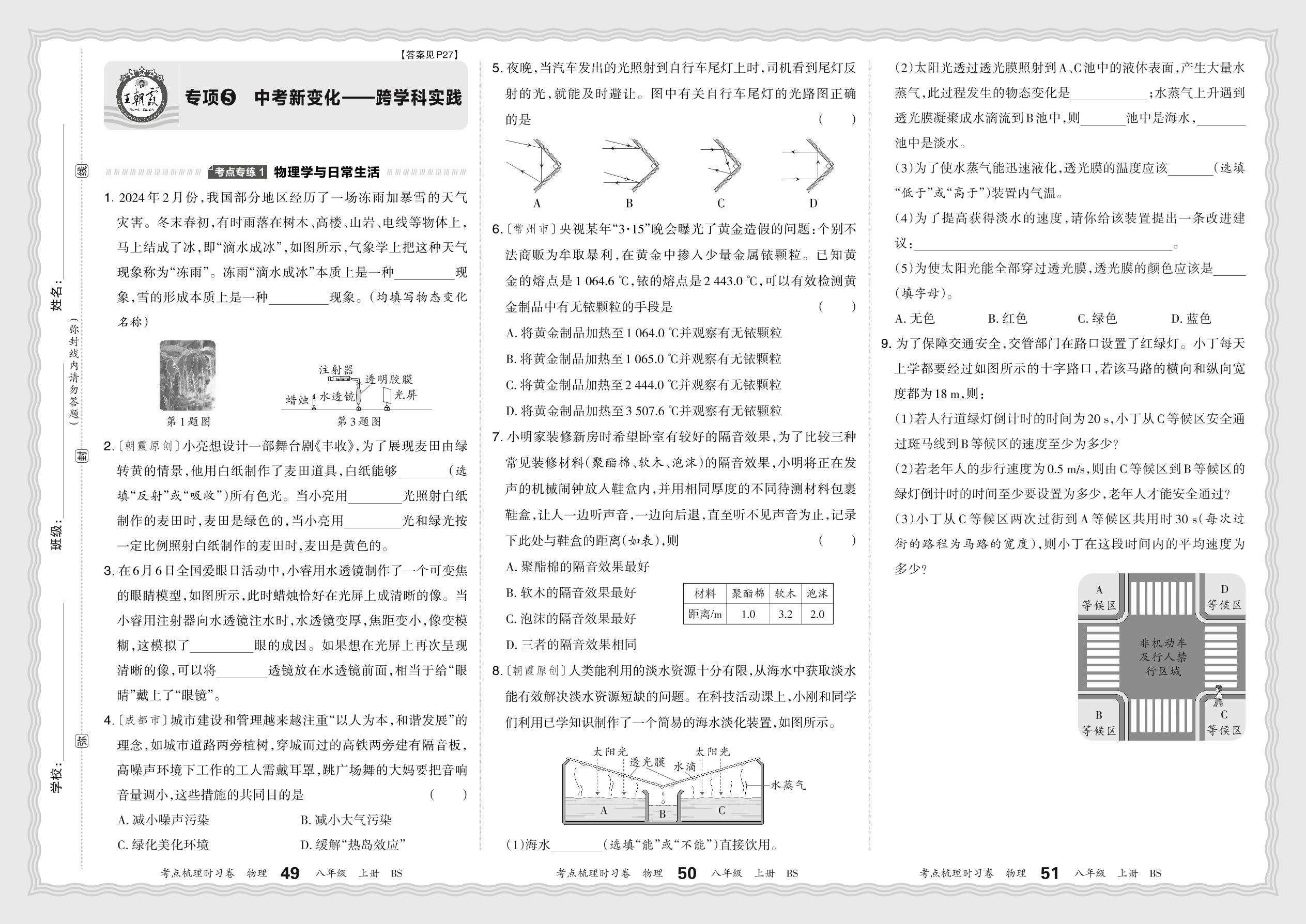 2024秋上册八年级物理北师版 期末专项卷KD版·中考新变化——跨学科实践【5】