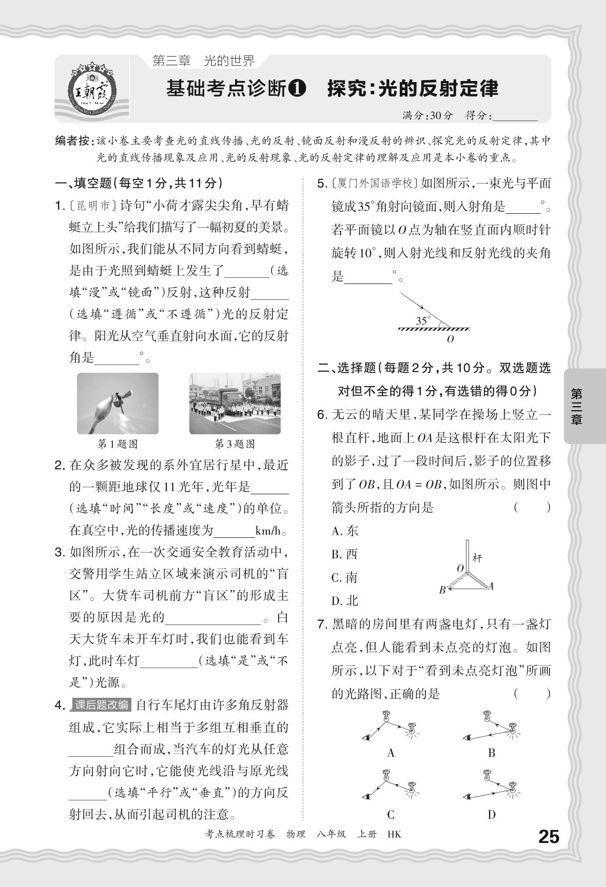 2024秋上册八年级物理沪科版 第三章 基础考点诊断1 探究:光的反射定律