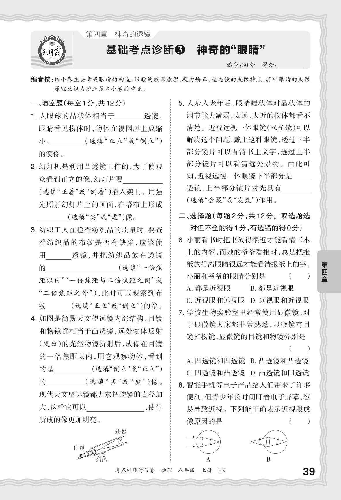 2024秋上册八年级物理沪科版 第四章 基础考点诊断3 神奇的“眼睛”