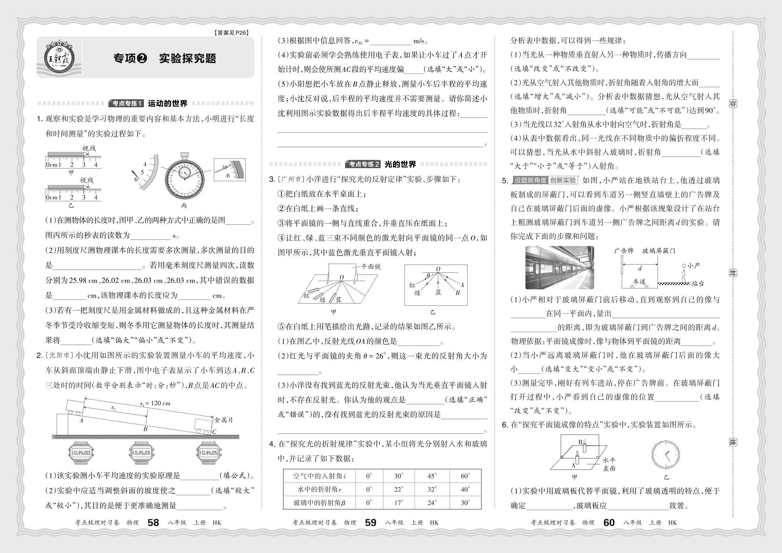 2024秋上册八年级物理沪科版 期末专项卷KD版·实验探究题【2】