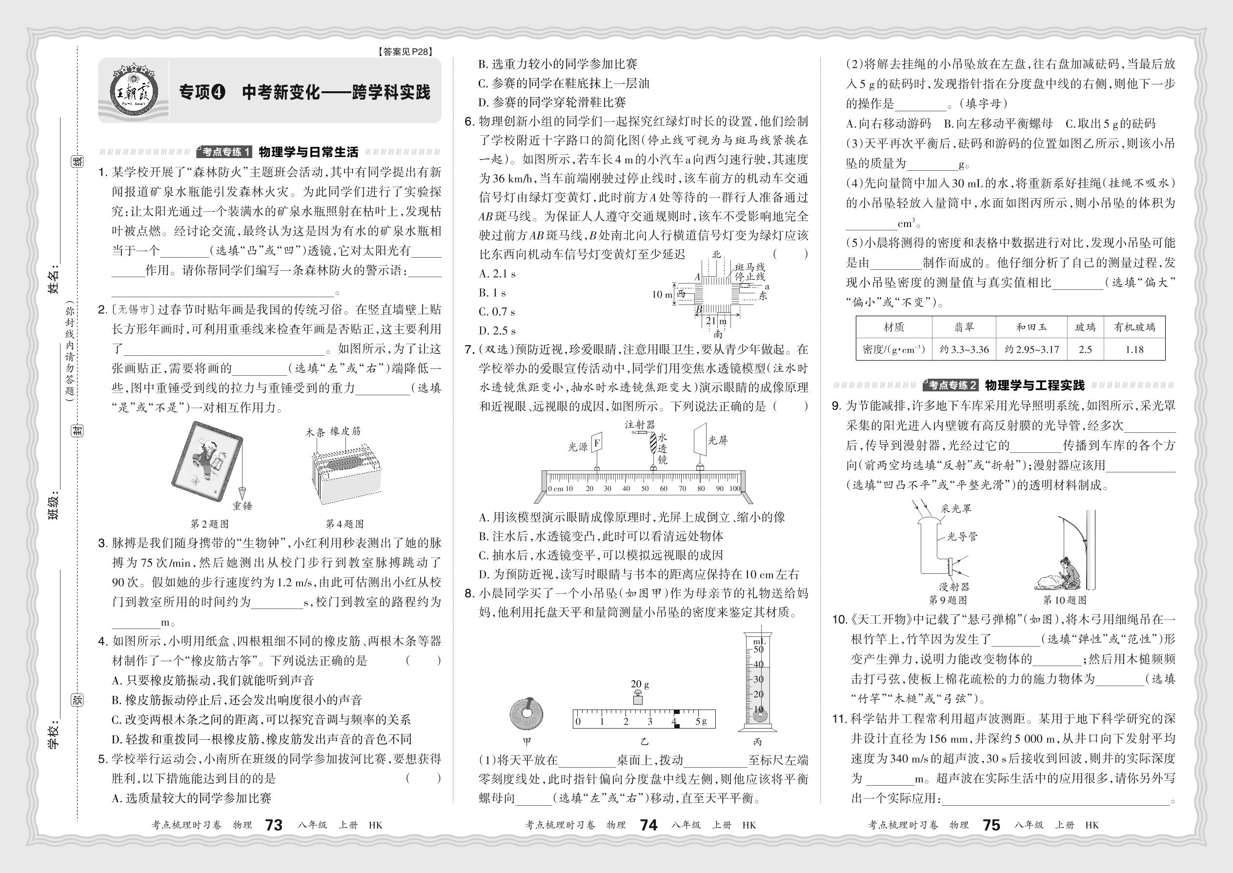 2024秋上册八年级物理沪科版 期末专项卷KD版·中考新变化——跨学科实践【4】
