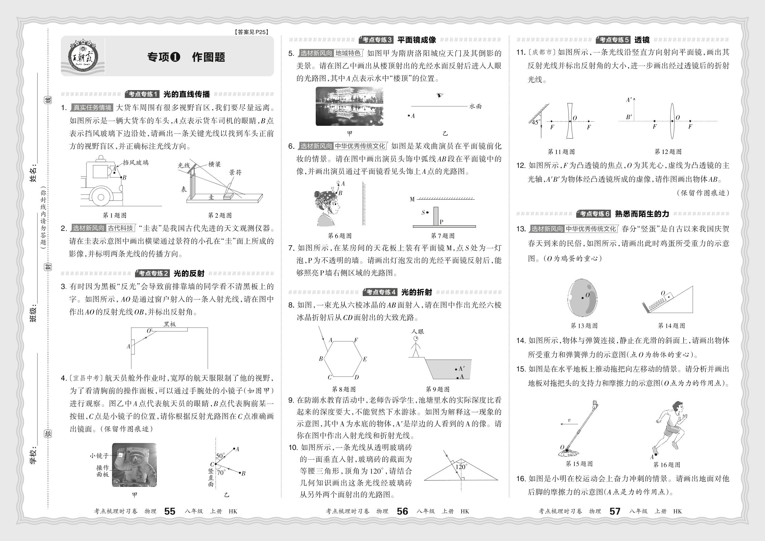 2024秋上册八年级物理沪科版 期末专项卷KD版·作图题【1】