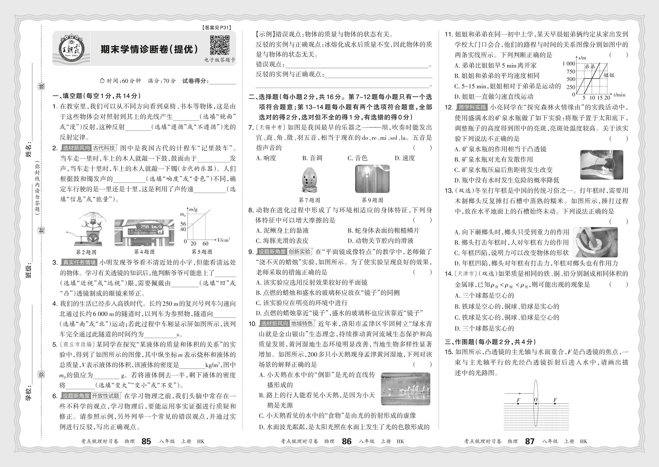 2024秋上册八年级物理沪科版 期末学情诊断卷(提优)