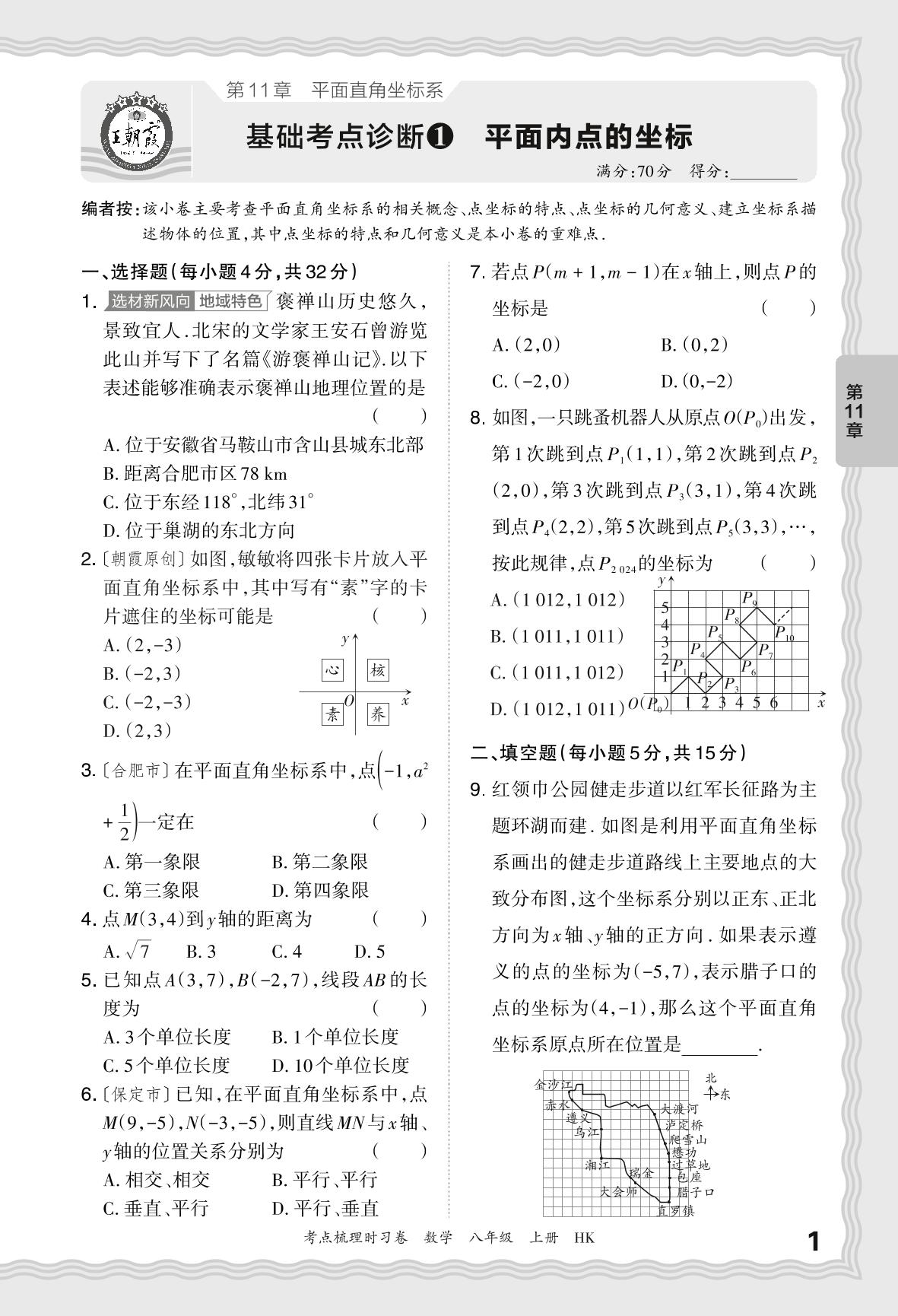2024秋上册八年级数学沪科版 第11章 基础考点诊断 平面内点的坐标【1】