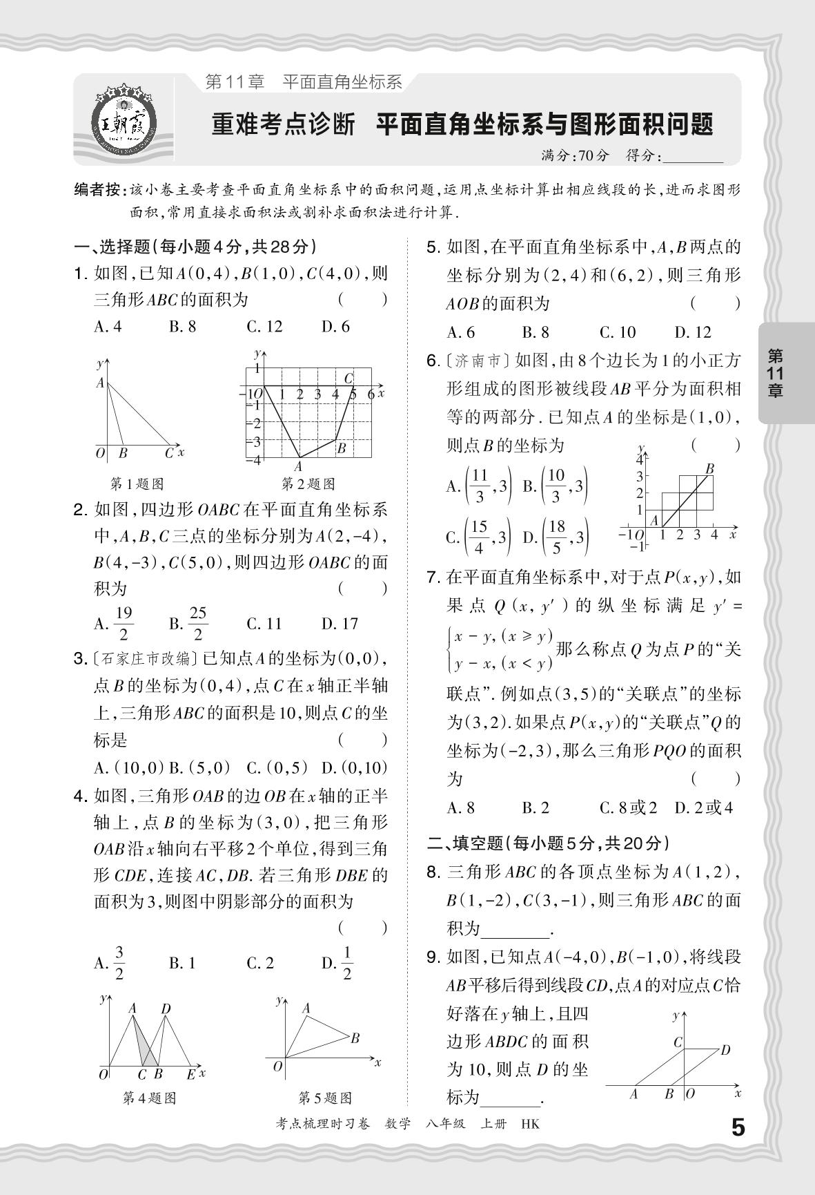 2024秋上册八年级数学沪科版 第11章 重难考点诊断 平面直角坐标系与图形面积问题