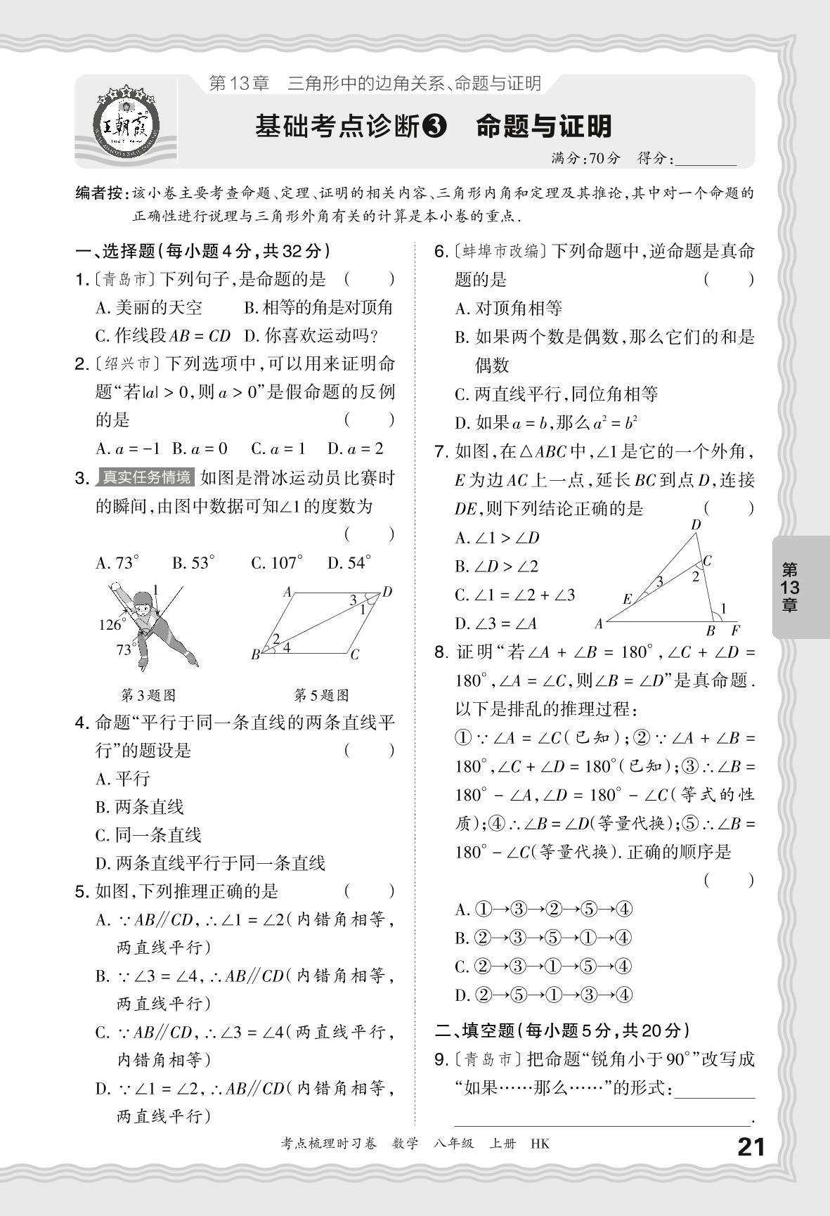 2024秋上册八年级数学沪科版 第13章 基础考点诊断 命题与证明【3】