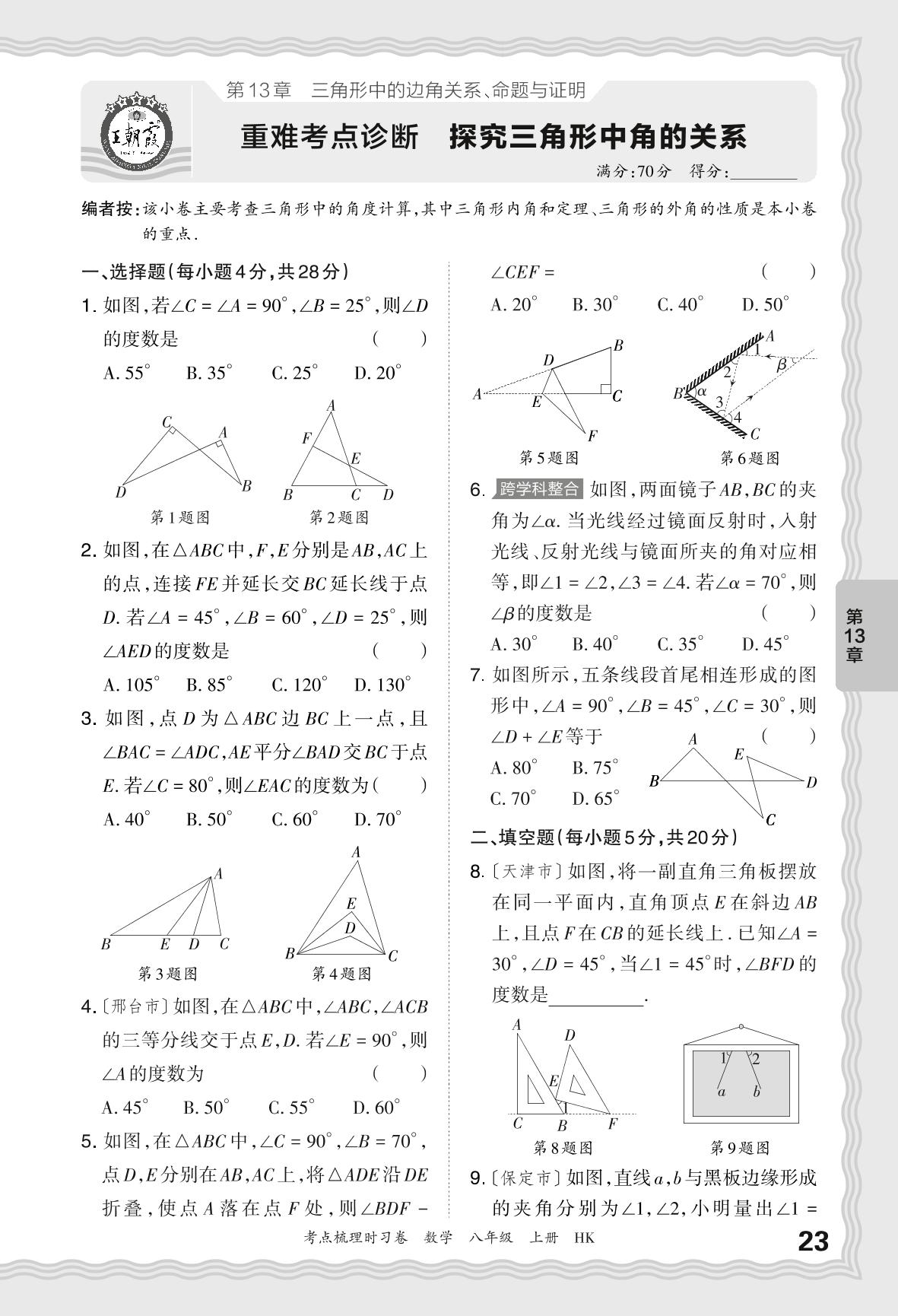 2024秋上册八年级数学沪科版 第13章 重难考点诊断 探究三角形中角的关系