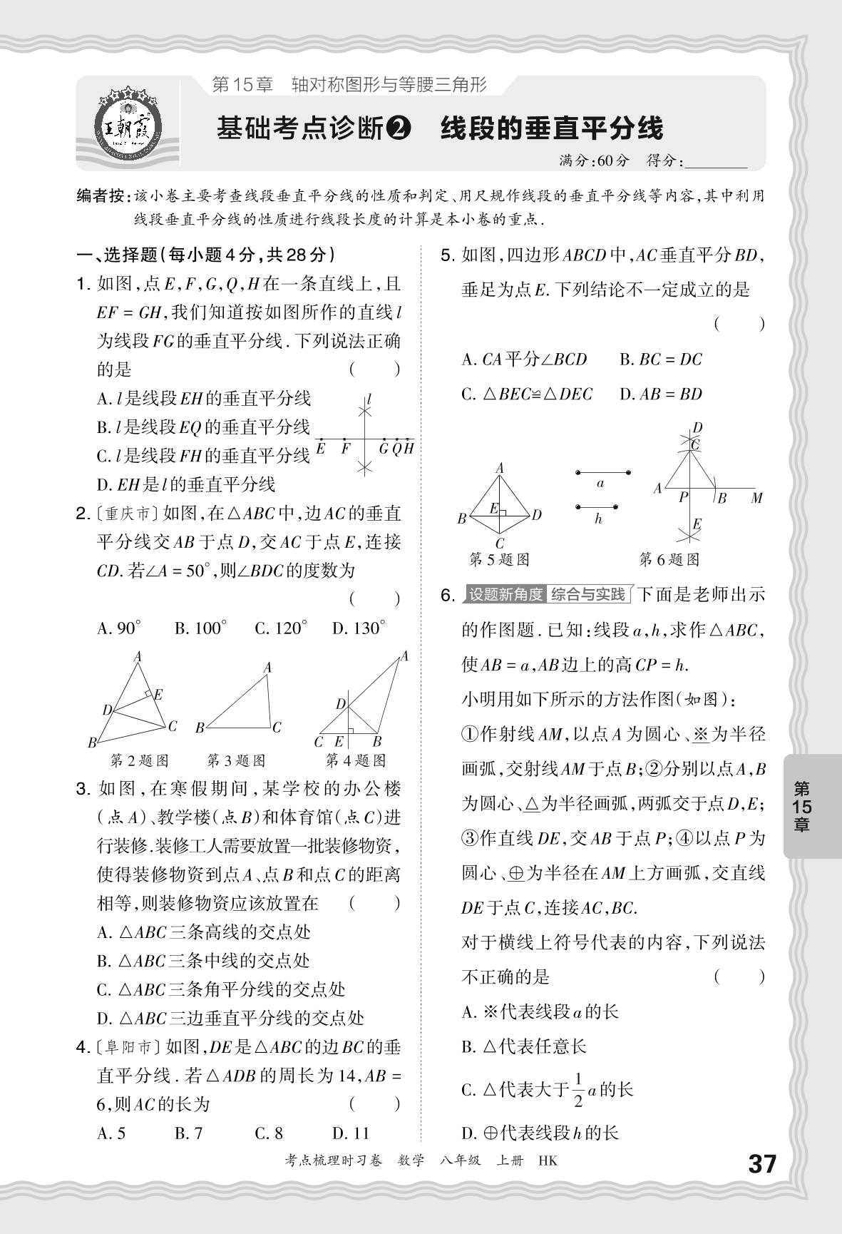 2024秋上册八年级数学沪科版 第15章 基础考点诊断 线段的垂直平分线【2】