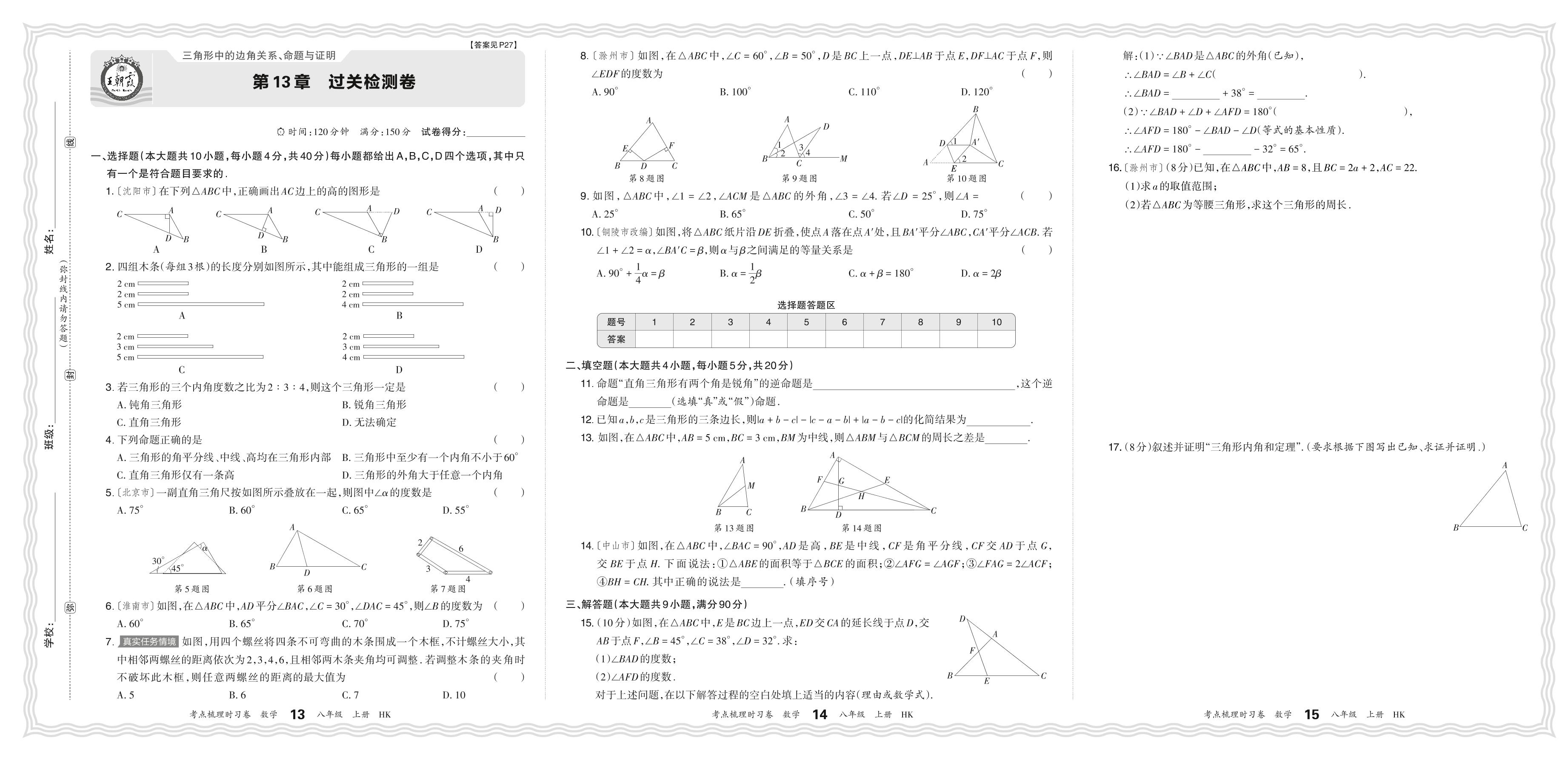 2024秋上册八年级数学沪科版 第13章 过关检测卷