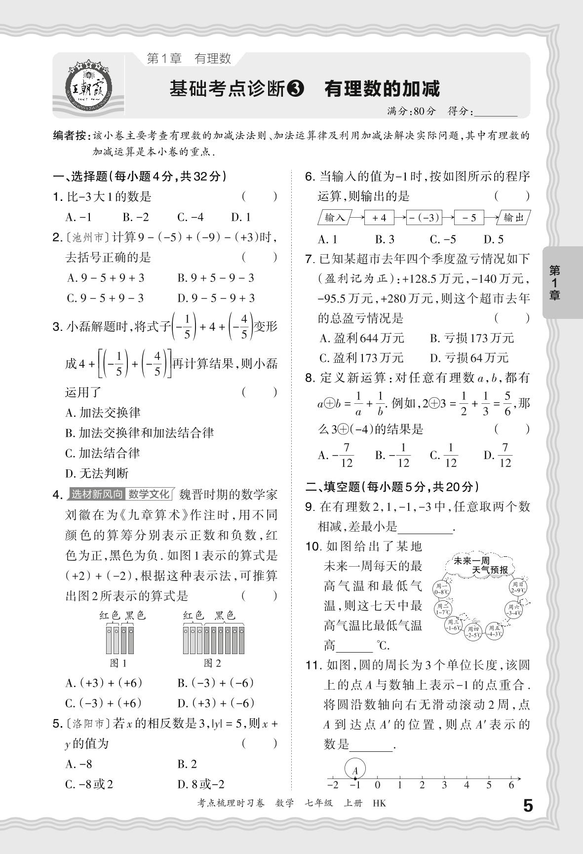 2024秋上册七年级数学沪科版 第1章 基础考点诊断 有理数的加减【3】