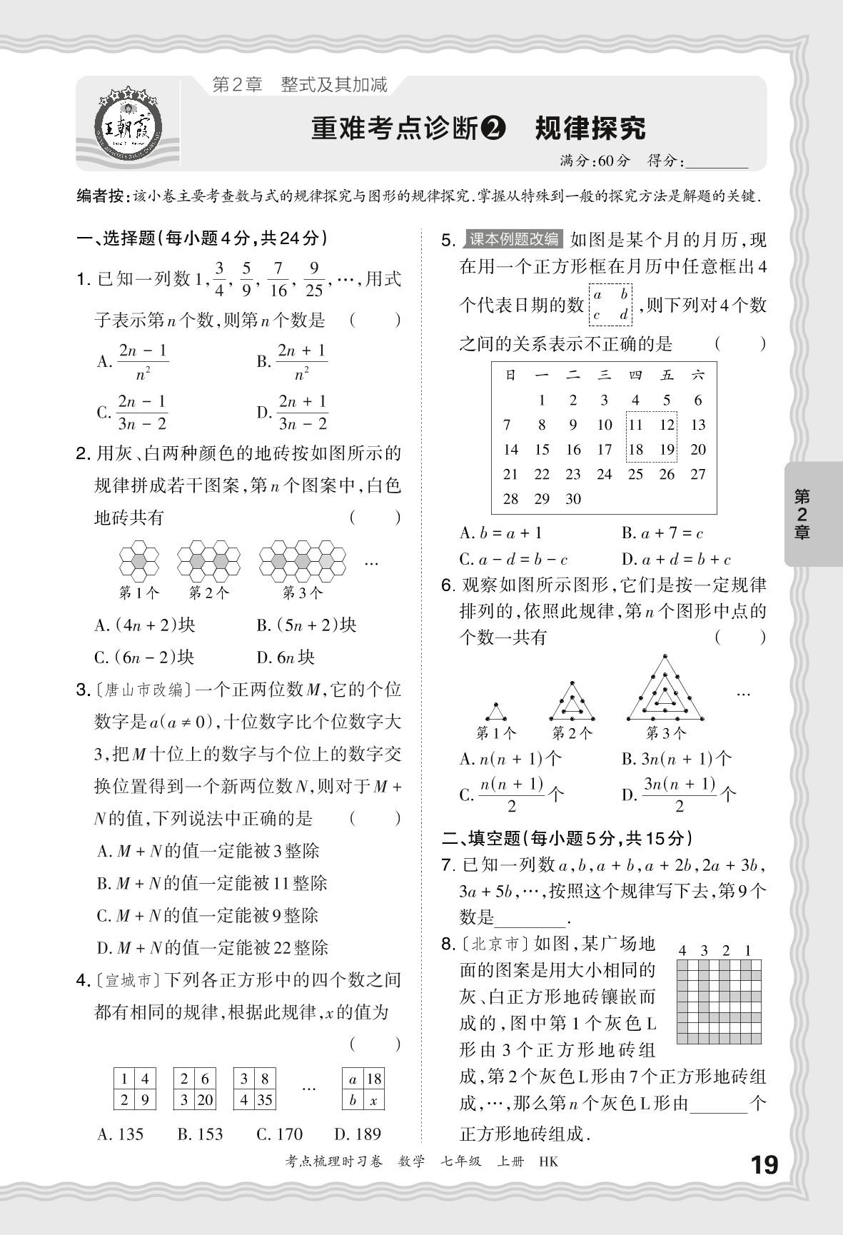 2024秋上册七年级数学沪科版 第2章 重难考点诊断 规律探究【2】